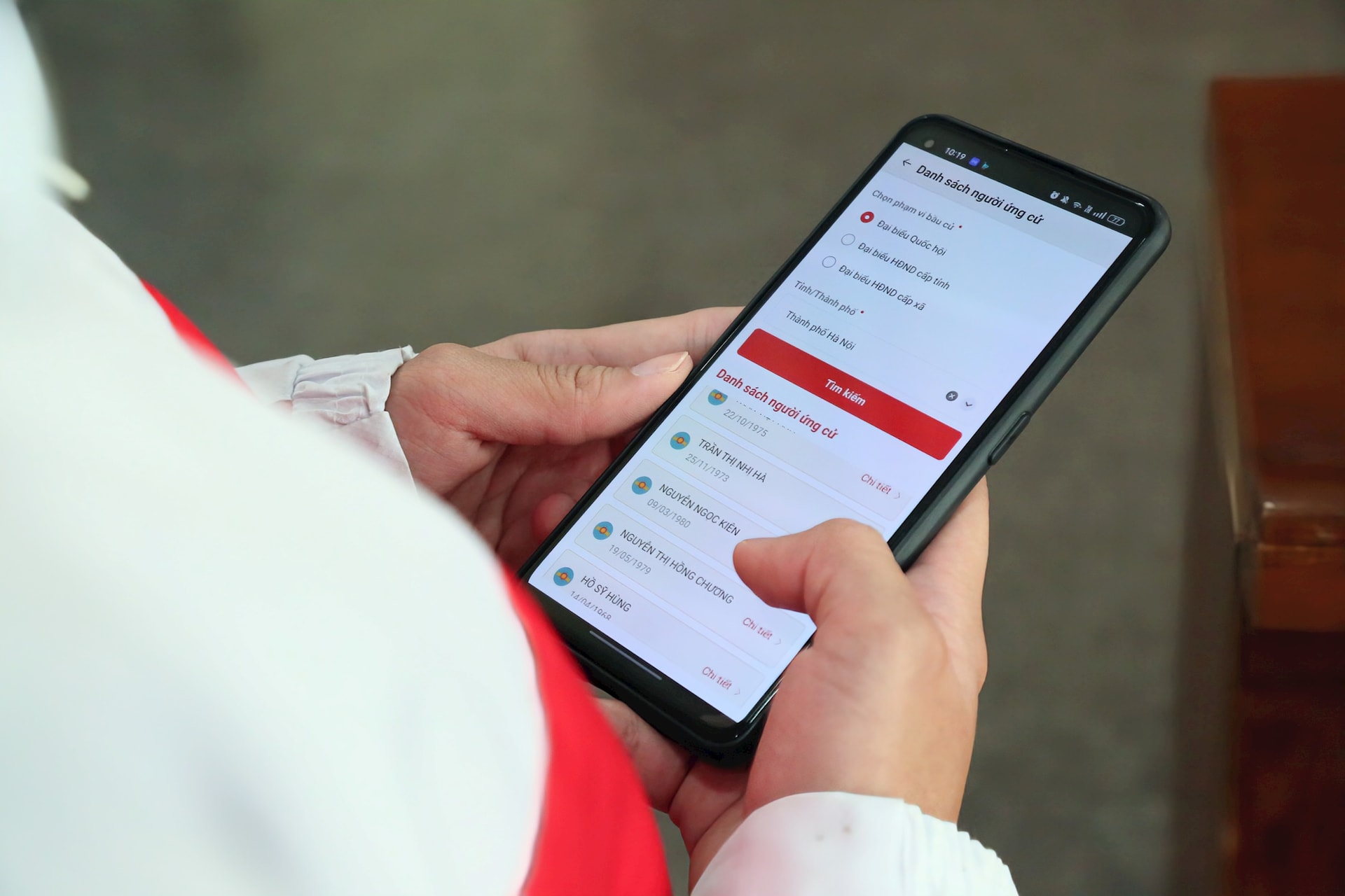 Sinh viên chủ động theo dõi thông tin ứng cử viên qua ứng dụng VNeID. Ảnh: Tuyết Linh