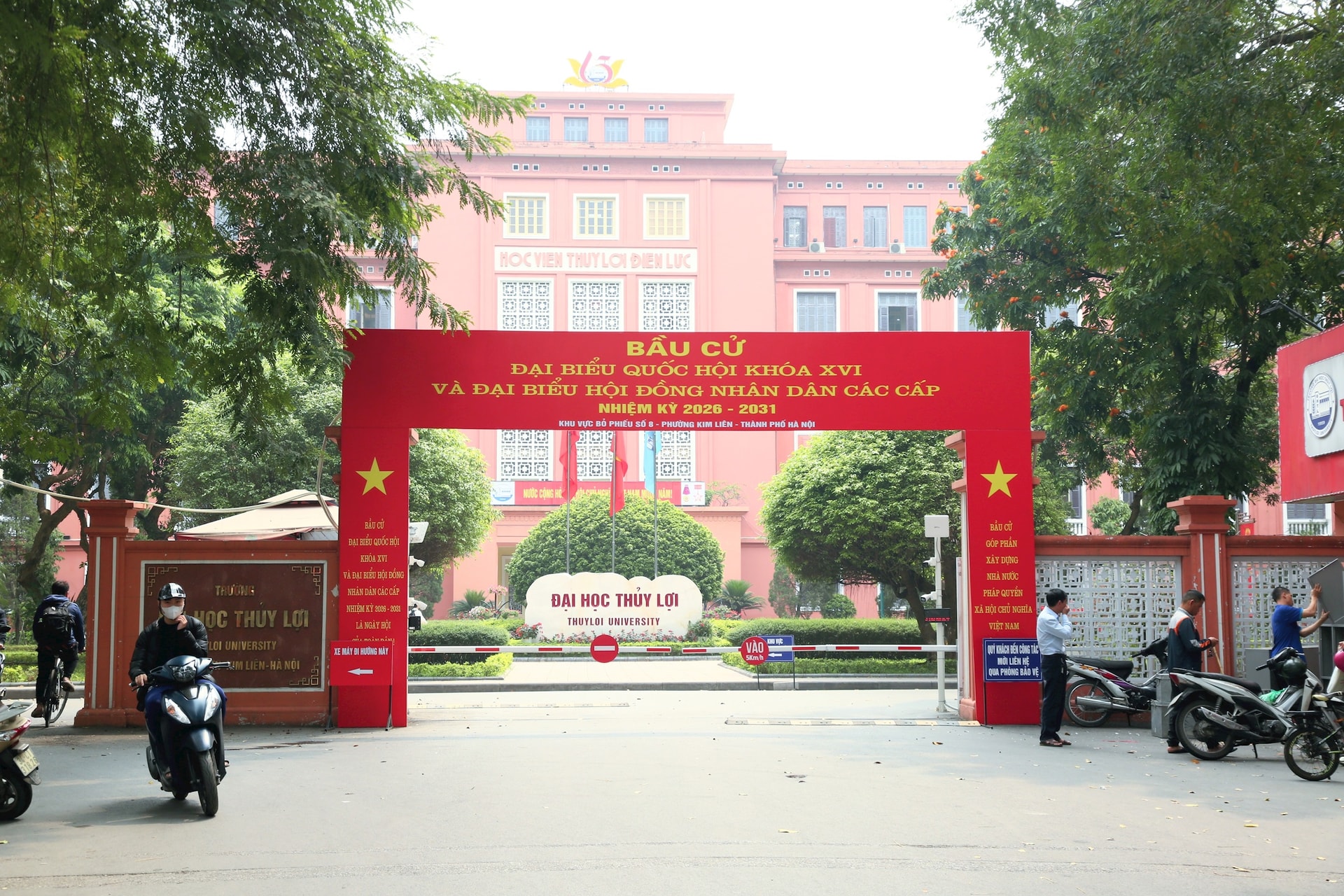 Khu vực bỏ phiếu tại các điểm trường đại học Hà Nội được trang hoàng rực rỡ, sẵn sàng cho ngày hội non sông. Ảnh: Tuyết Linh