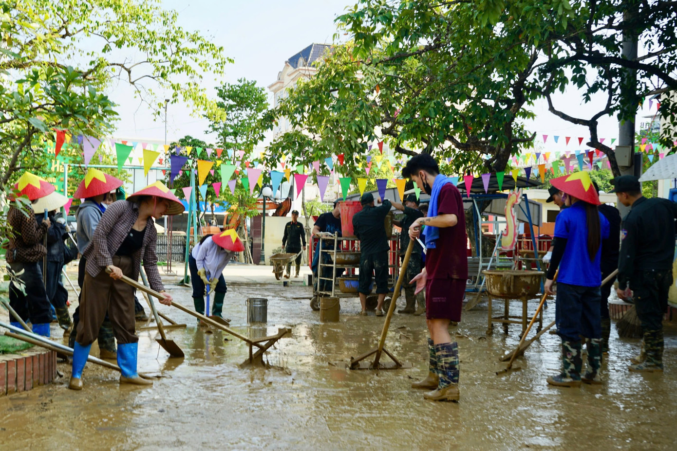 Chiến dịch “Hành trình yêu thương - Hướng tới Thái Nguyên (Chặng 1)” được phát động chỉ trong nửa ngày. Dưới nắng gắt sau mưa, những bàn tay trẻ miệt mài dọn từng đống bùn, lau từng lớp sàn, khôi phục lại vẻ sạch đẹp cho trường học và khu dân cư.