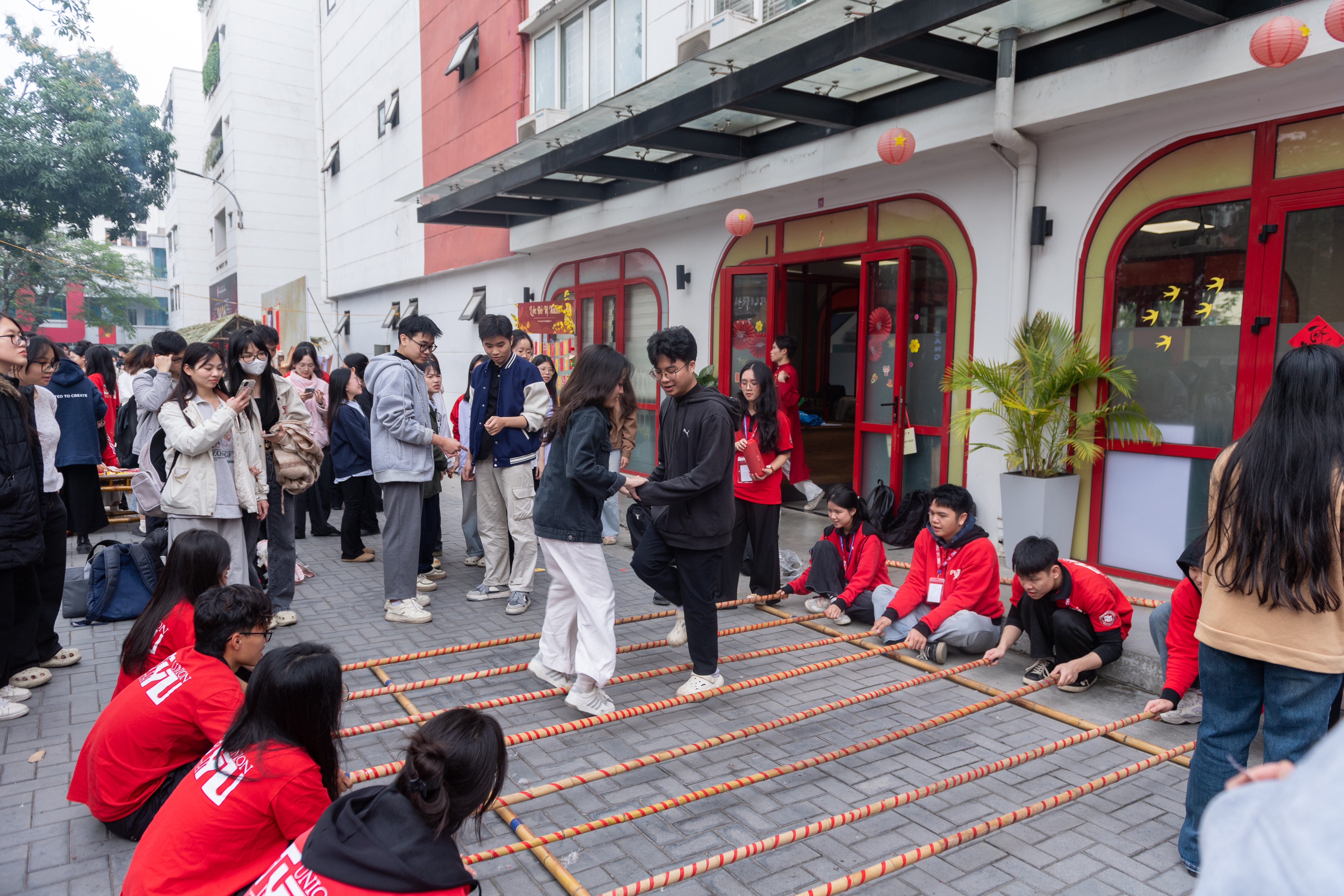 Sinh viên cùng nhau trải nghiệm trò chơi dân gian nhảy sạp