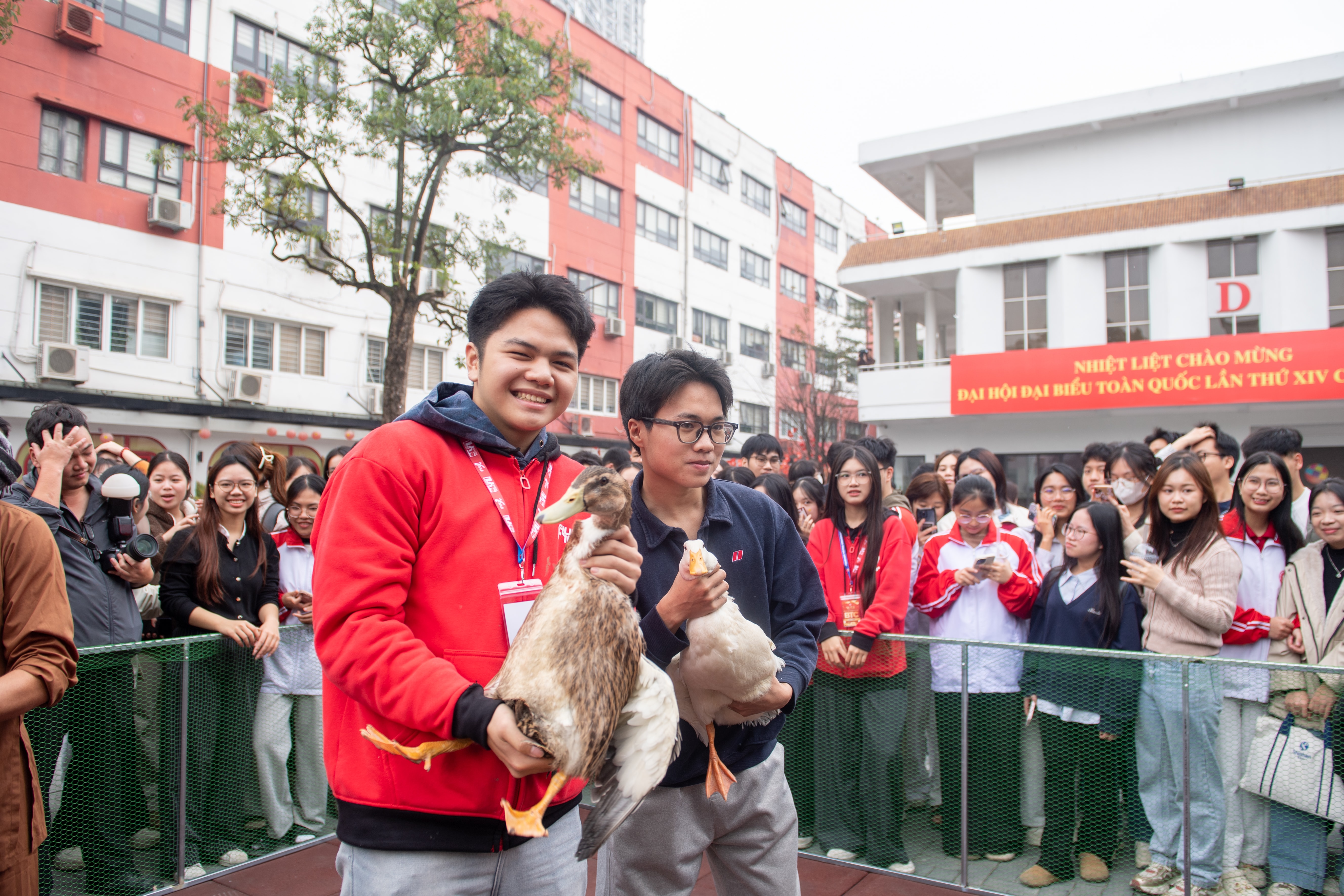 Hoạt động "Bắt vịt" thu hút sự chú ý đông đảo của sinh viên nhà trường.