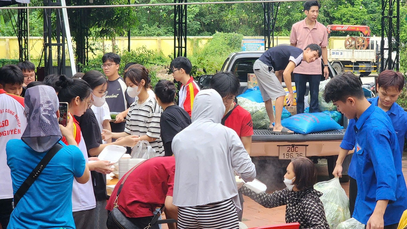 Chị Lại Thị Thanh Hoa – Bí thư Đoàn trường ĐH Kỹ thuật Công nghiệp (ĐH Thái Nguyên) chia sẻ: “Ngay khi nhận được thông tin thiệt hại, Đoàn – Hội Sinh viên trường đã lập tức huy động lực lượng tình nguyện hỗ trợ. Các bạn sinh viên mang cơm, nước, nhu yếu phẩm đến từng khu vực bị cô lập, đồng thời cùng bà con dọn dẹp, khắc phục hậu quả mưa lũ. Dù đường ngập sâu, trời mưa lớn, các bạn vẫn kiên cường bám địa bàn để giúp người dân”.