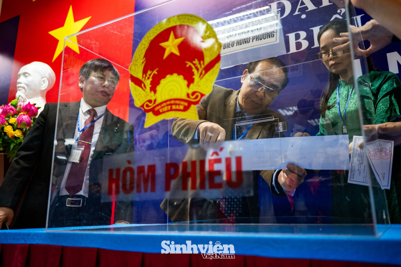 Không khí tại điểm bầu cử nóng lên từng phút. Đông đảo sinh viên đã xếp hàng từ sớm để làm thủ tục nhận thẻ cử tri và phiếu bầu. Những lá phiếu đầu tiên của tuổi trẻ NEU đã chính thức được bỏ vào hòm phiếu, mang theo niềm tin và trách nhiệm với đất nước. Hoàn thành bỏ phiếu, bạn Lương Thị Anh Thư (sinh năm 2005) chia sẻ: "Đây là lần đầu tiên em được tự tay cầm lá phiếu thực hiện quyền công dân ngay tại chính ngôi trường mình đang theo học. Cảm giác vô cùng thiêng liêng và tự hào".