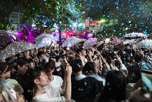 Điểm nhấn tại sự kiện là khu vực cây thông Noel cao gần 15m cùng màn trình diễn phun tuyết và bắn pháo hoa rực rỡ kéo dài gần 1 tiếng. Máy phun tuyết được đặt trên đỉnh cây thông, tạo ra những cơn "mưa tuyết" phủ trắng khuôn viên trường khiến người tham dự có cảm giác tận hưởng không gian Giáng sinh nơi trời Âu.