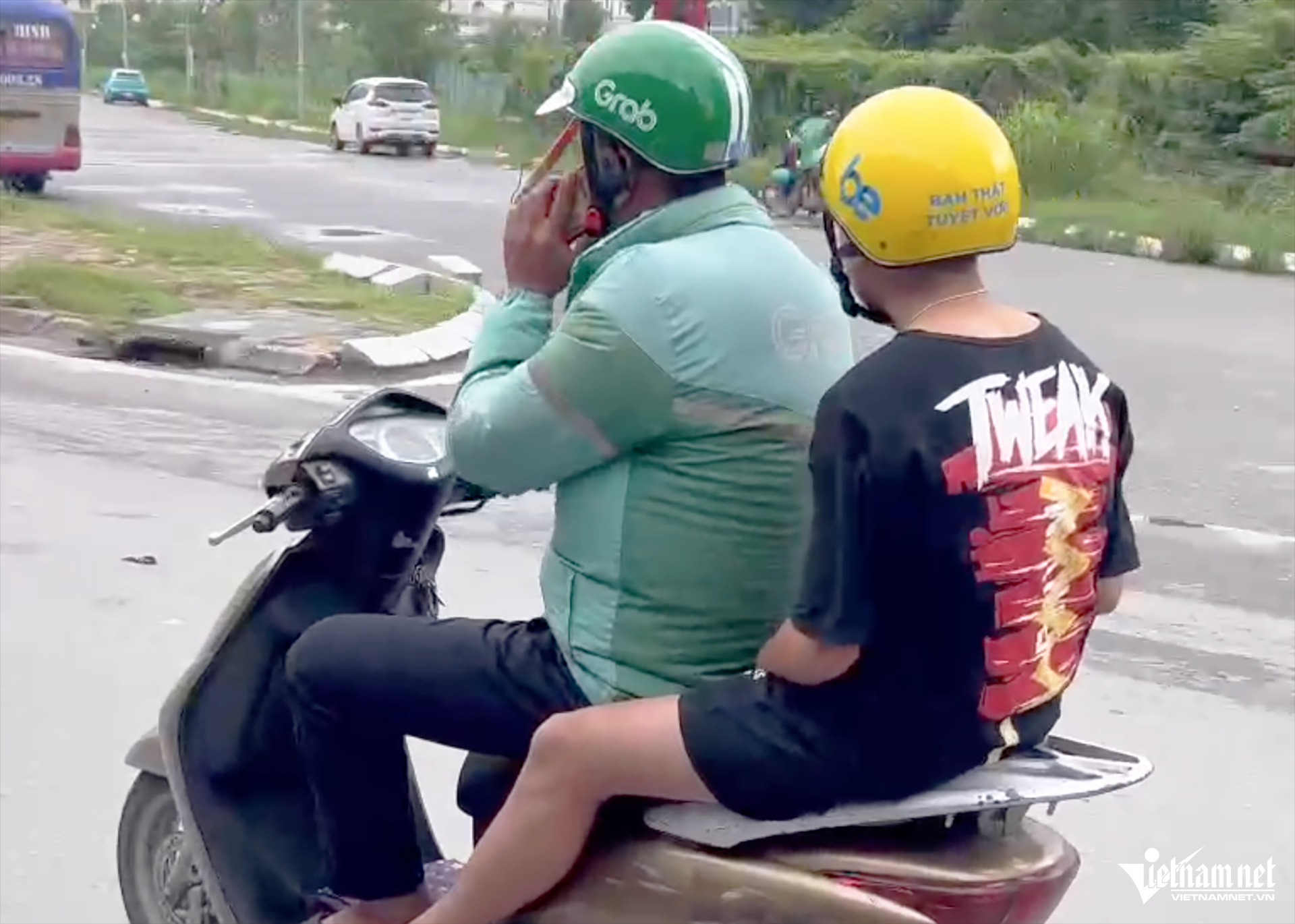 Gần 8h, cảnh sát phát hiện một nam tài xế xe ôm công nghệ điều khiển xe máy có hành vi che biển số.