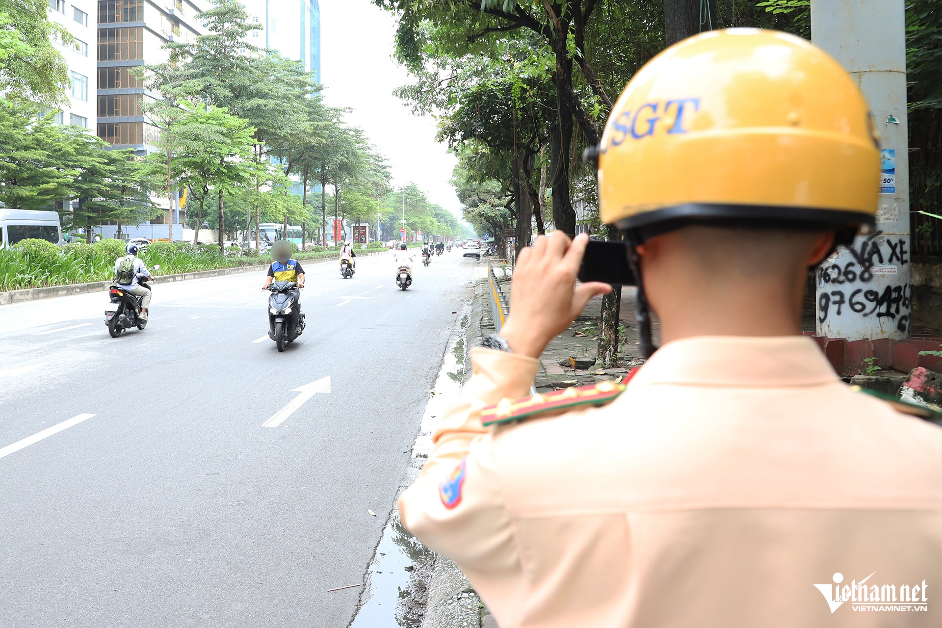 "Nhằm xử lý triệt để vi phạm này, chúng tôi bố trí các tổ công tác sử dụng mô tô, ô tô chuyên dụng tiến hành tuần tra, kiểm soát, ghi hình rồi dừng xe xử lý", Trung tá Chiến thông tin.