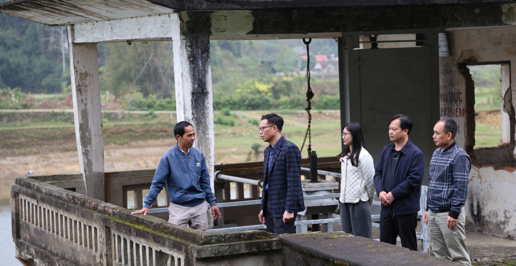 Đoàn công tác khảo sát thực tế tại Nhà máy thủy điện Thoong Gót, xã Đàm Thủy.