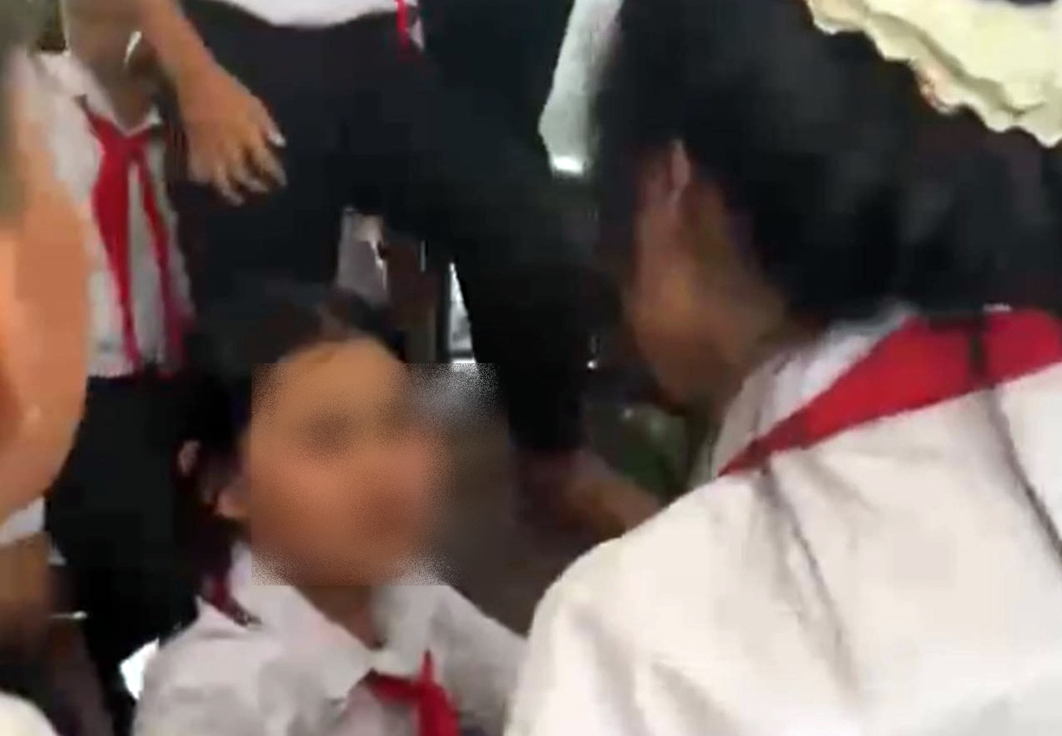 Ảnh cắt ra từ clip cảnh em học sinh bị bạn cùng lớp uy hiếp.