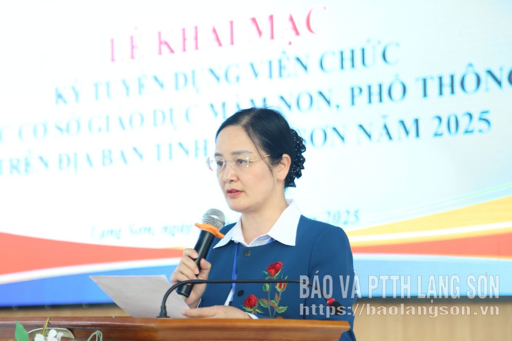 Lãnh đạo Sở Giáo dục và Đào tạo Lạng Sơn phát biểu khai mạc kỳ tuyển dụng