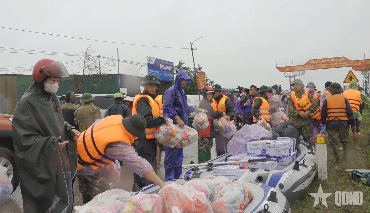 Các lực lượng tiếp tế lương thực hỗ trợ những vùng ngập sâu.