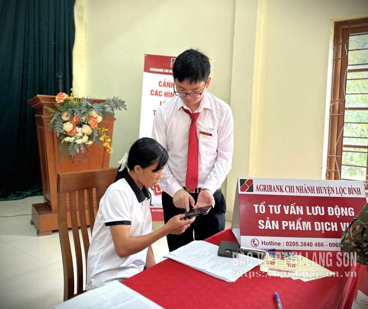 Cán bộ Ngân hàng Nông nghiệp và Phát triển nông thôn Việt Nam Chi nhánh Lộc Bình Lạng Sơn tư vấn hình thức chi trả trợ cấp không dùng tiền mặt cho người dân