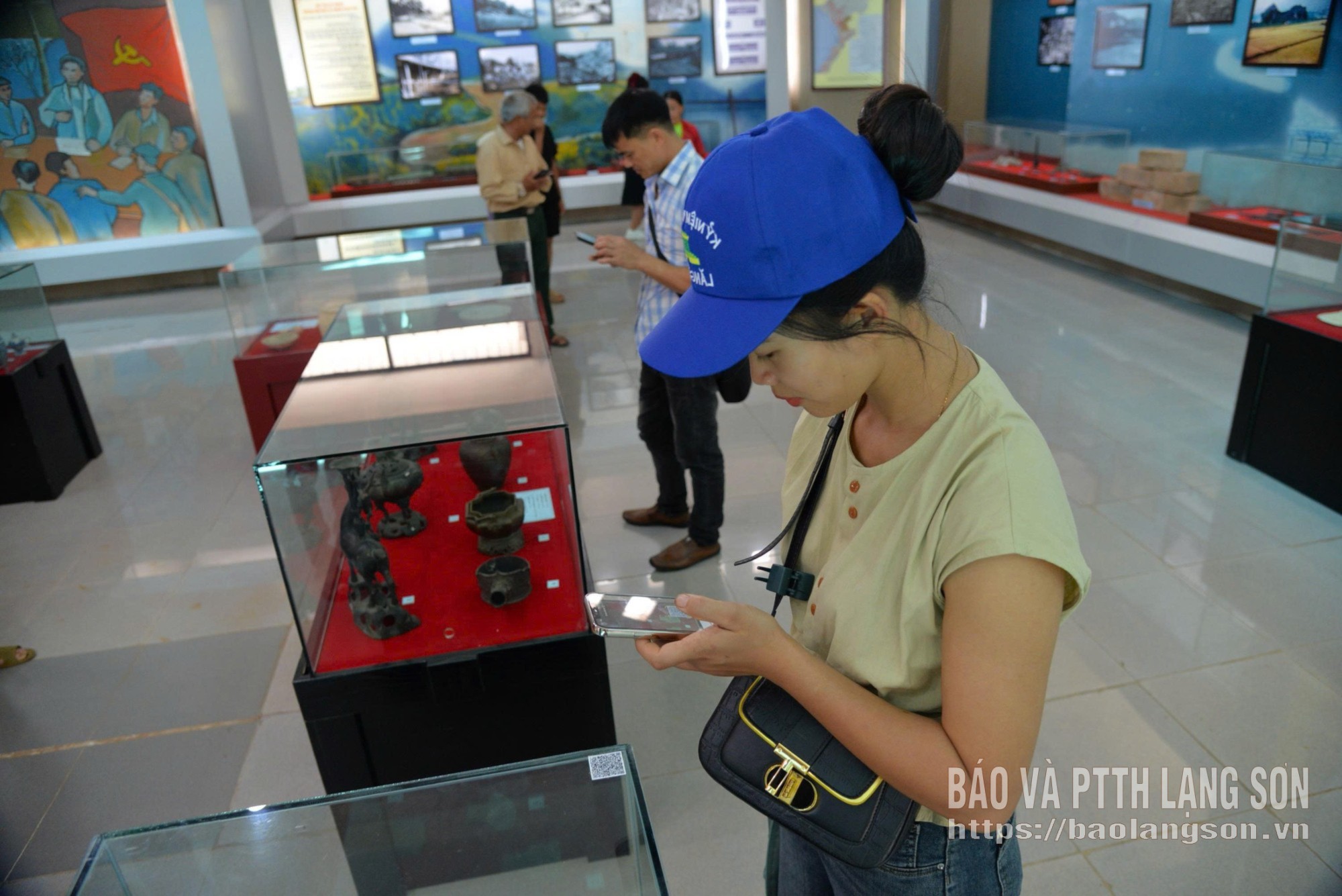 Khách tham quan quét mã QR tìm hiểu thông tin về các hiện vật tại Bảo tàng tỉnh