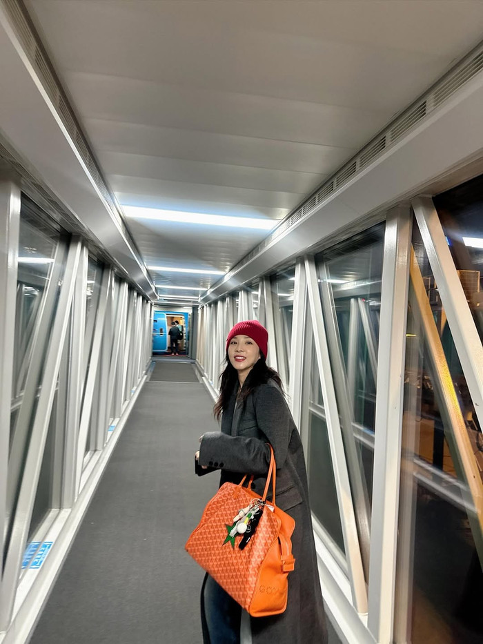 Kwon Eun Bi lựa chọn trang phục kín đáo khi bay về Việt Nam. Ảnh: IGNV