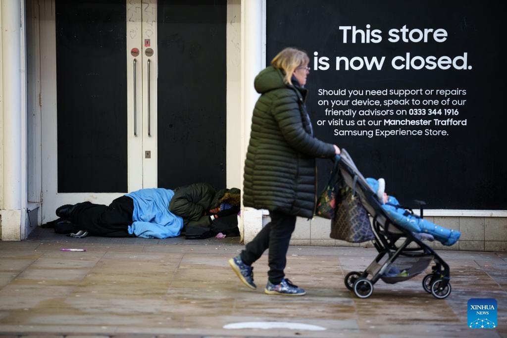 Người vô gia cư trên đường phố ở Manchester, Anh. Ảnh: Tân Hoa xã