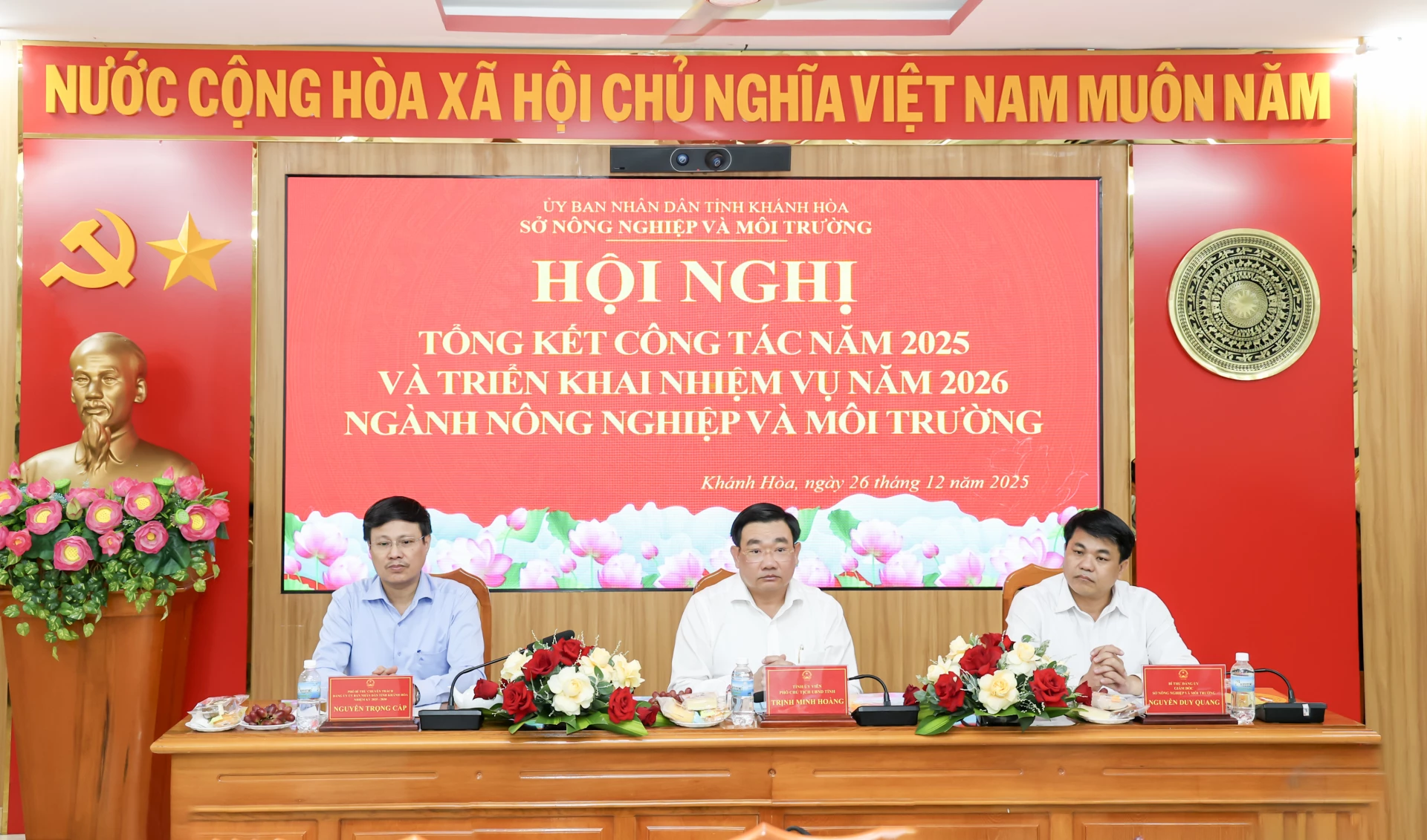 Năm 2026, ngành tập trung phấn đấu tốc độ tăng trưởng GRDP khu vực nông, lâm nghiệp, thủy sản đạt 2,81%; mức giảm tỷ lệ hộ nghèo đa chiều đạt từ 1 đến 1,5%; duy trì tỷ lệ che phủ rừng ở mức 47%; nâng tỷ lệ dân số nông thôn sử dụng nước sạch đáp ứng quy chuẩn lên 87,5%. Một số nhiệm vụ trọng tâm trong năm 2026 gồm: Triển khai Đề án phát triển nuôi biển công nghệ cao và Đề án phát triển kinh tế nông nghiệp số, nông nghiệp xanh, tuần hoàn; xây dựng vùng sản xuất tập trung, ứng dụng blockchain trong truy xuất nguồn gốc sản phẩm; phát triển sản phẩm dê, cừu thành sản phẩm Halal để mở rộng thị trường xuất khẩu; thực hiện Đề án đưa sản phẩm OCOP trở thành đại sứ du lịch tỉnh Khánh Hòa giai đoạn 2026 - 2030; tham mưu sửa đổi, hoàn thiện cơ chế về giao đất, cho thuê đất, định giá đất để tháo gỡ điểm nghẽn cho các dự án trọng điểm; tiếp tục đơn giản hóa thủ tục hành chính, đẩy mạnh dịch vụ công trực tuyến toàn trình và vận hành hiệu quả bộ máy sau sáp nhập.