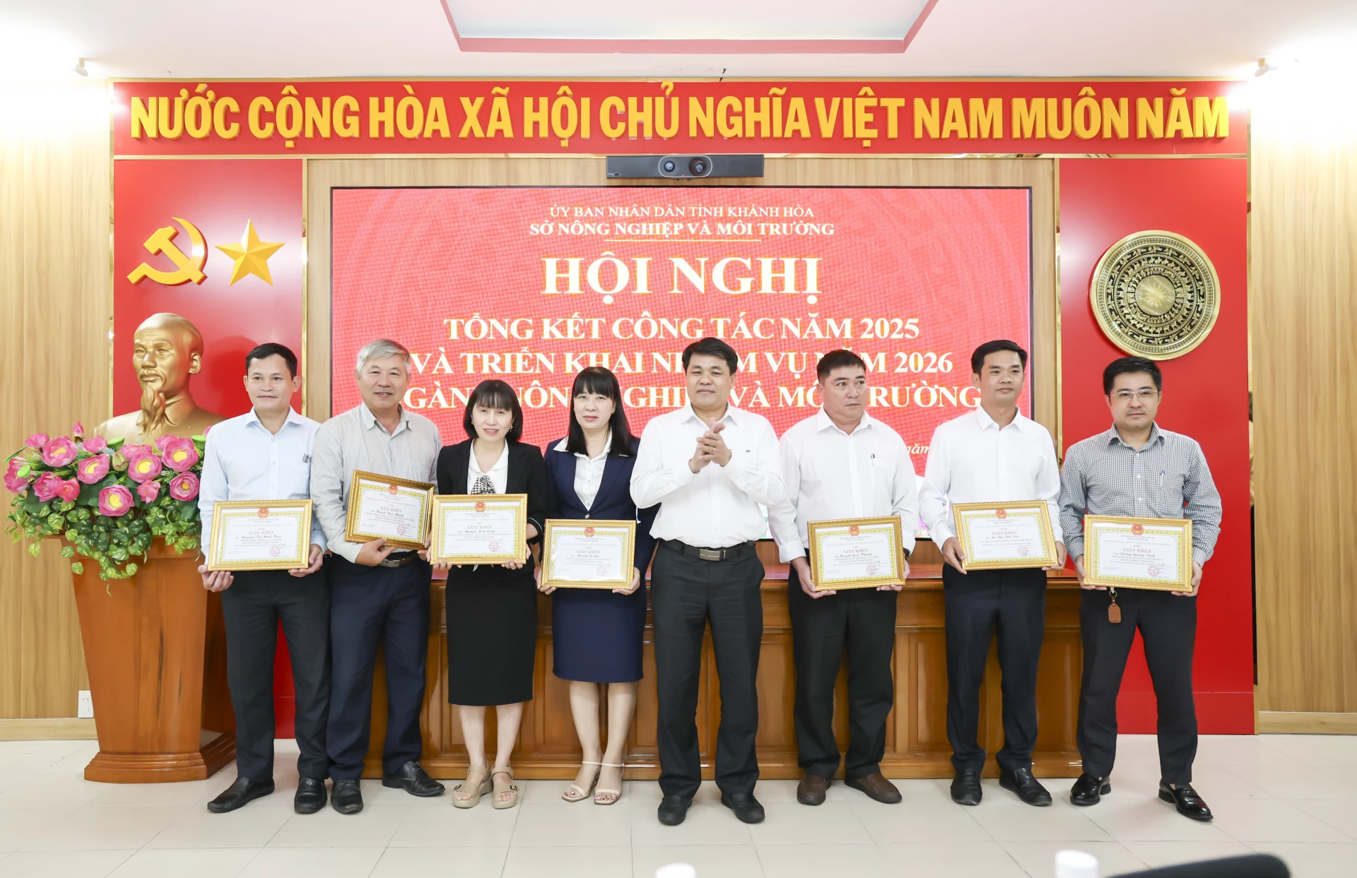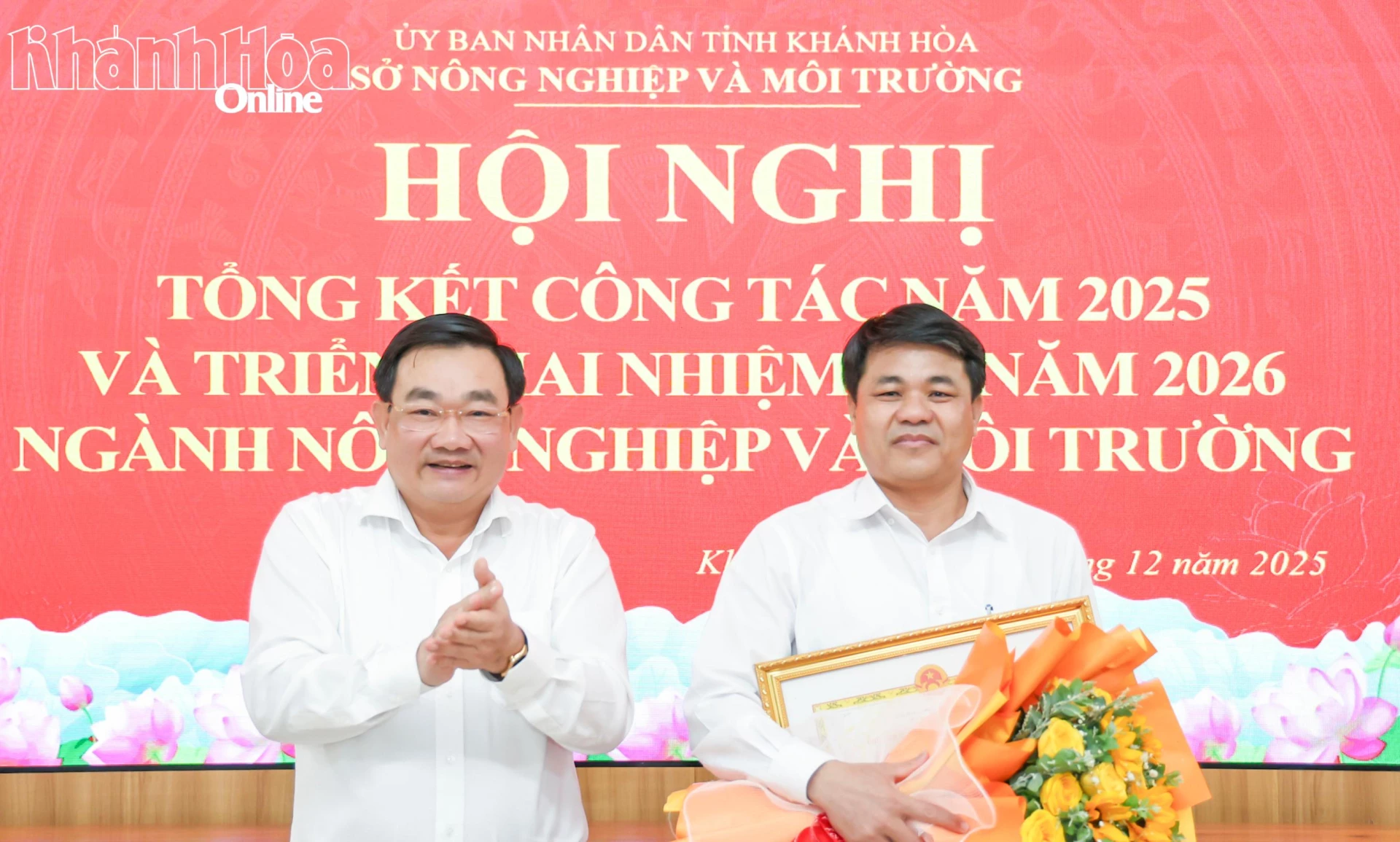 Năm 2025, tốc độ tăng trưởng khu vực nông nghiệp đạt 0,83% so với năm 2024; giá trị xuất khẩu thủy sản đạt 870 triệu USD (tăng 2,9%), chiếm 37,8% tổng giá trị xuất khẩu toàn tỉnh, đưa Khánh Hòa vào top 5 địa phương xuất khẩu thủy sản lớn nhất cả nước; 100% tàu cá từ 6m trở lên (5.127 tàu) được đăng ký và cấp phép; 100% tàu cá từ 15m trở lên (1.493 tàu) đã lắp đặt thiết bị giám sát hành trình. Toàn tỉnh hiện có 600 sản phẩm OCOP được công nhận; diện tích nông nghiệp ứng dụng công nghệ cao, hữu cơ đạt hơn 426ha (tăng 81,39%); tỷ lệ che phủ rừng đạt 47,19% (vượt kế hoạch); tỷ lệ thu gom chất thải rắn đô thị và tỷ lệ khu công nghiệp có hệ thống xử lý nước thải tập trung đều đạt 100%. Trong năm, ngành đã hoàn thành "Chiến dịch 90 ngày làm giàu, làm sạch cơ sở dữ liệu đất đai", xác thực thông tin cho hơn 1,18 triệu thửa đất với cơ sở dữ liệu quốc gia về dân cư; kết nối liên thông dữ liệu với cơ quan thuế và hệ thống một cửa để rút ngắn thời gian xử lý thủ tục hành chính.