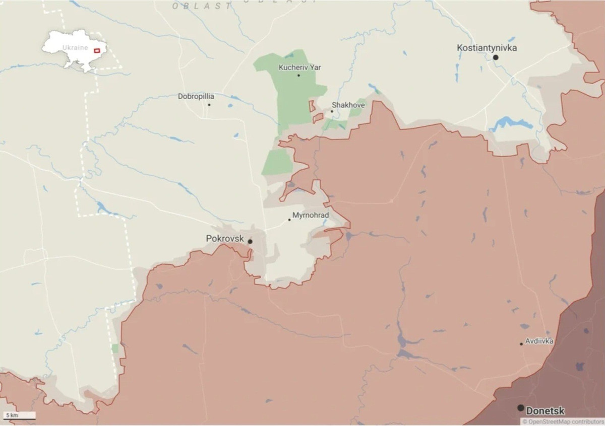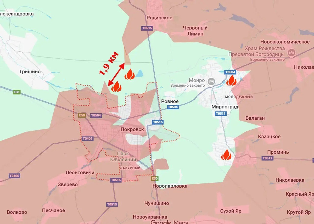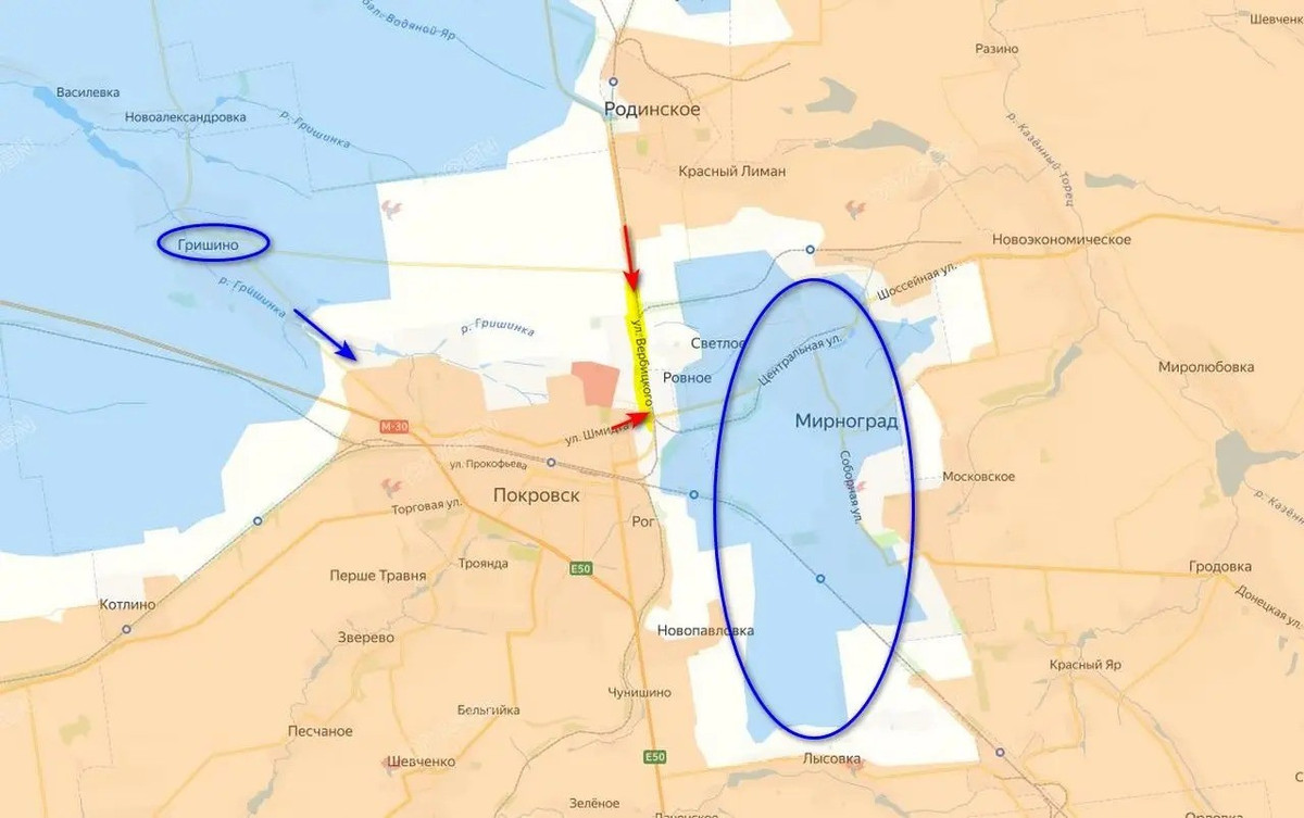 Theo thông tin mới nhất từ tiền tuyến, quân Nga đã tiến vào khu vực Dinas, kiểm soát khu vực đô thị. Họ đang tiến quân chậm nhưng chắc chắn, dần dần đến khu vực phố Verbytsky, nơi ngăn cách Pokrovsk với Myrnohrad, và dọc theo đó, quân Nga cũng đang đang tiến vào từ đầu cầu Rodinske.