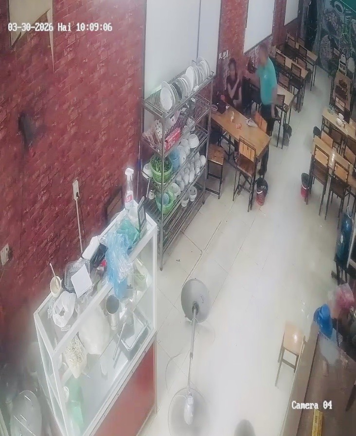 Trích xuất camera ngày 30/3/2026 cho thấy B.N.V đã đến cửa hàng của chị Phạm Thị Tâm tại xã Văn Giang (Hưng Yên), có hành vi quấy rối, xúc phạm và đe dọa chị. Ảnh: NVCC.