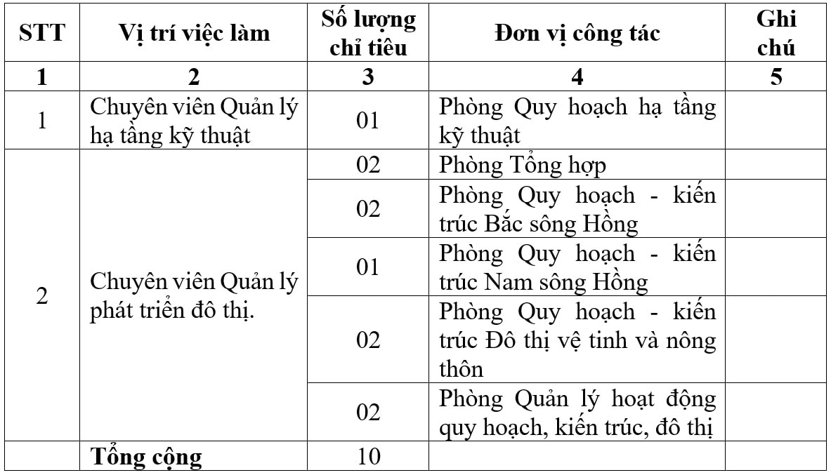 Căn cứ yêu cầu thực tế, Sở Quy hoạch - Kiến trúc thành phố Hà Nội thông báo tuyển dụng hợp đồng thực hiện công việc chuyên môn, nghiệp vụ theo Nghị quyết số 26/2024/NQ-HĐND ngày 19-11-2024 của UBND thành phố, như sau: