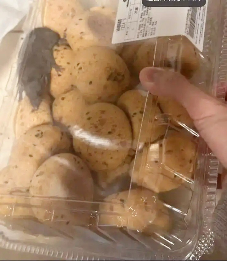 Tuy nhiên khi nhận hàng và mở lớp giấy bạc giữ nhiệt, họ phát hiện một con chuột đang bò ngoe nguẩy trong hộp bánh. Hộp đựng bánh trong suốt nên hình ảnh con chuột càng trở nên rõ ràng, khiến người mua suýt nữa “hồn bay phách tán”.
