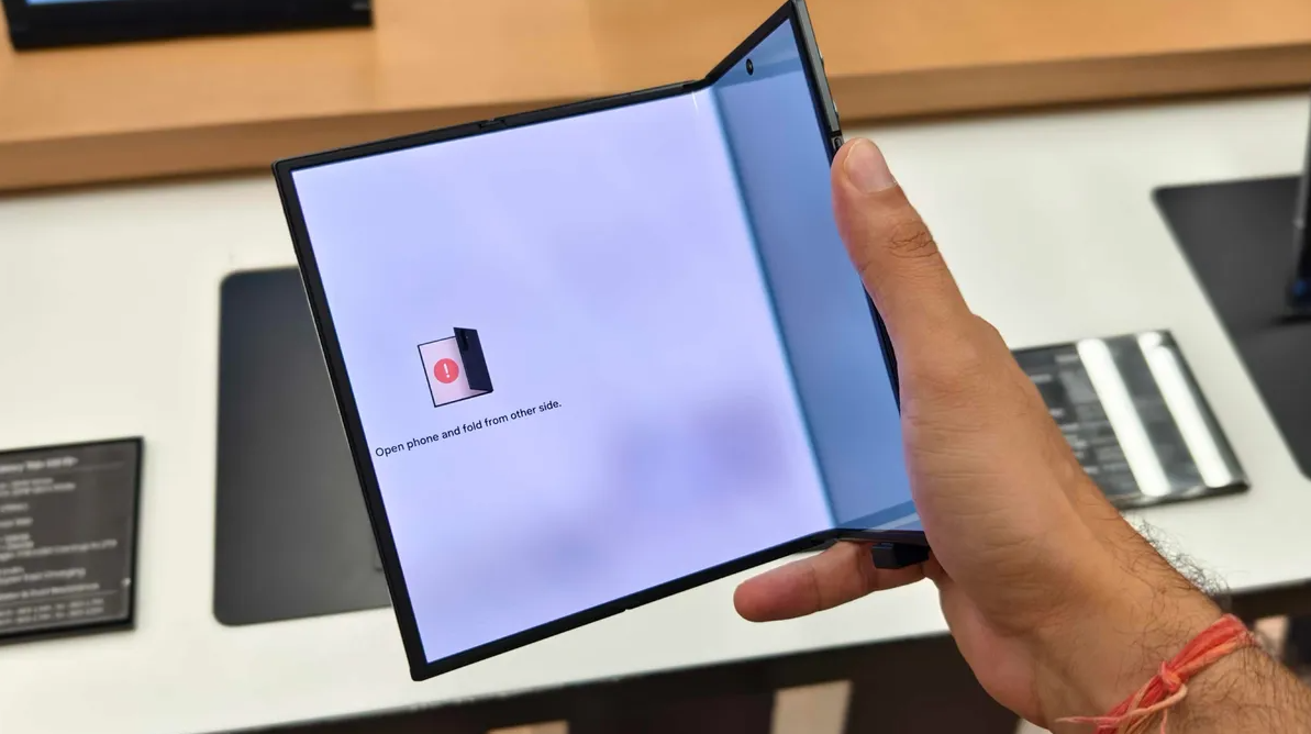 Trong thực tế, khi mở bản lề rộng hơn ở phía bên phải của Galaxy Z TriFold, chúng sẽ tự bật mở sau khi đạt đến một góc nhất định. Việc mở Galaxy Z TriFold khá trực quan nhờ độ đàn hồi. Và nếu bạn cố gắng gập Galaxy Z TriFold sai cách, Samsung đã tích hợp cảnh báo tự động trên màn hình và cảnh báo rung để ngăn bạn lại.