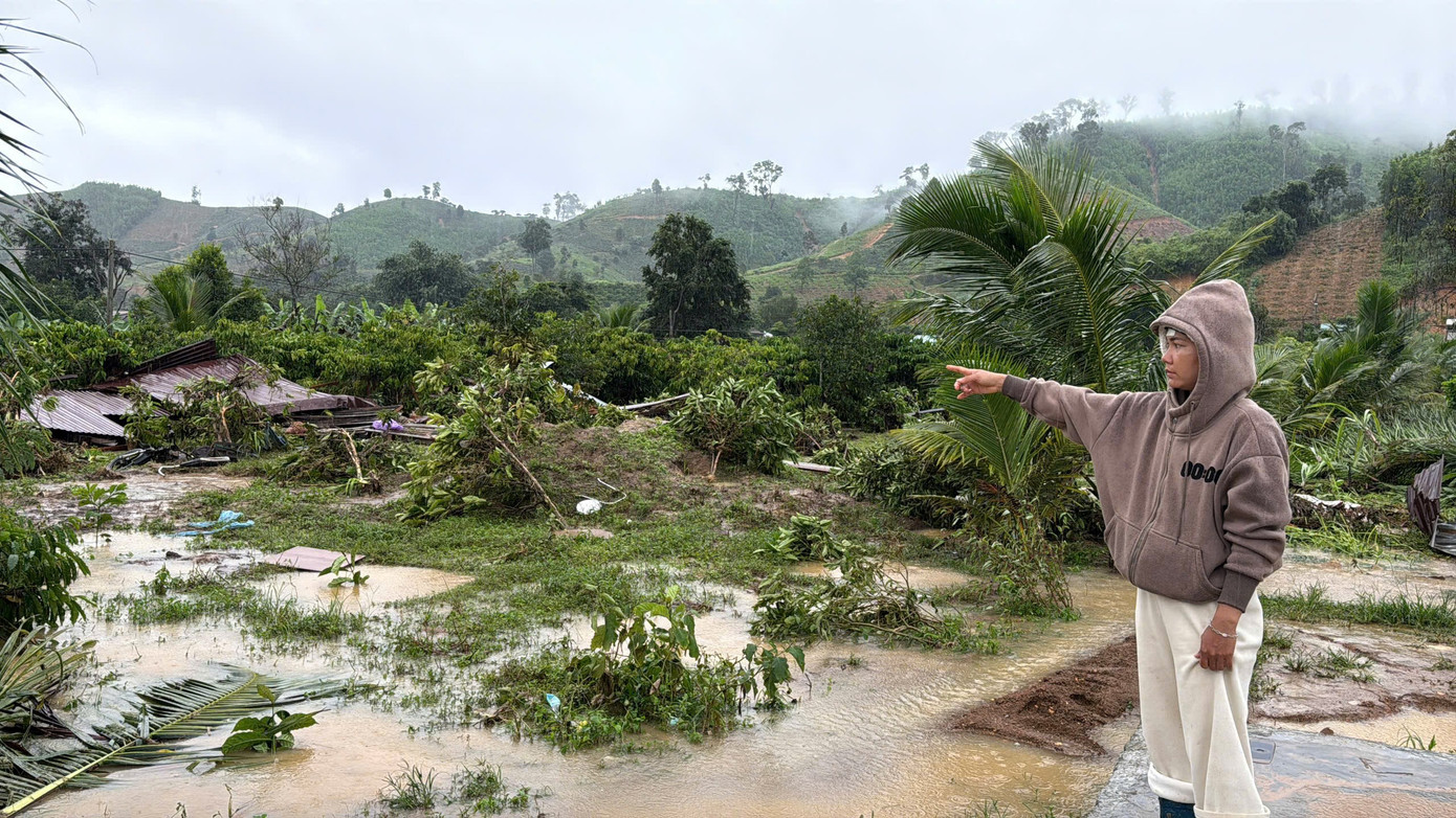 “Chưa tới 10 phút mà nhà tôi đã nghiêng, rồi sập, rồi trôi mất. Mọi thứ tan biến trước mắt tôi”, chị H Rỡ nghẹn ngào kể. Đây là lần thứ hai gia đình chị trắng tay vì lũ. Lần đầu tiên xảy ra vào năm 2017, khi trận lũ trước cuốn phăng căn nhà cũ.