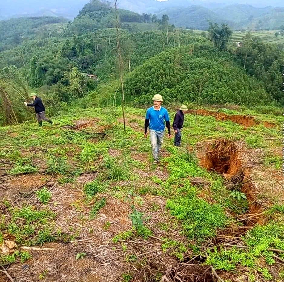 Ngọn đồi cao khoảng 50m, đã bị sụt lún 80cm, thậm chí có nơi bị sụt tới 1m.