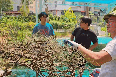 Thỉnh thoảng, Xuân Bắc nhờ thợ làm vườn chuyên nghiệp hỗ trợ những hạng mục cần kỹ thuật, song phần lớn công việc vẫn do anh và các con tự thực hiện. Cuối tuần, anh yêu cầu hai con lớn, Khánh Minh và Võ Nguyên, dọn cỏ, làm đất, trồng cây. Mùa mưa bão, bố con anh cắt tỉa các cành khô yếu, gia cố cọc cho các cây cao.