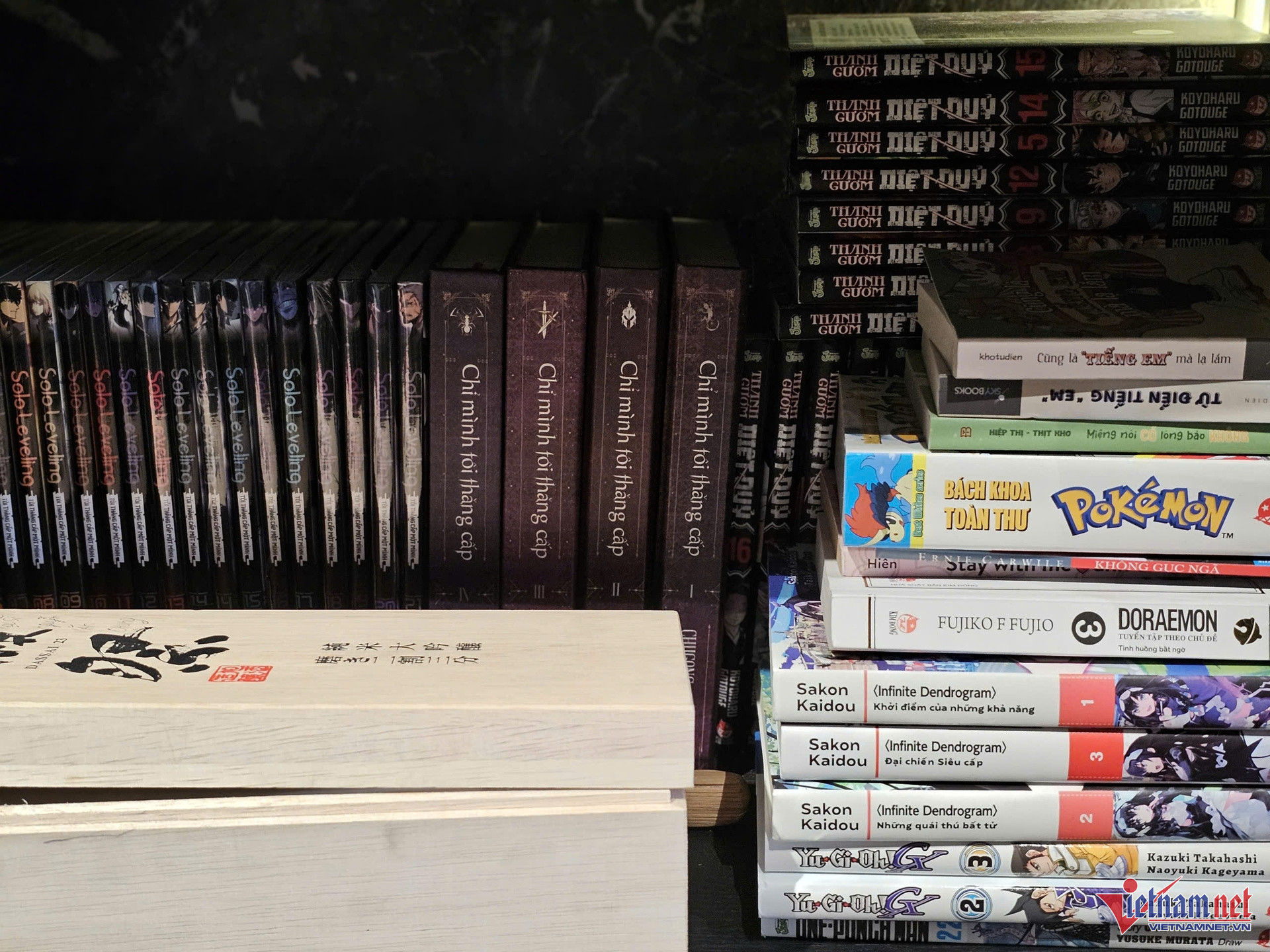 Trên kệ còn trưng bày nhiều vật phẩm, đồ trang trí, mô hình... khác.
