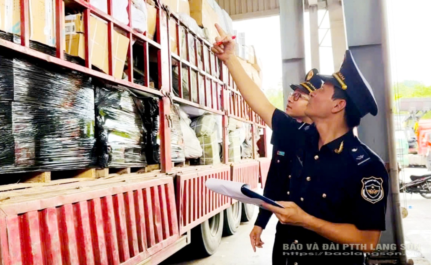 Cán bộ Hải quan cửa khẩu Quốc tế Hữu Nghị kiểm tra hàng hóa nhập khẩu qua cửa khẩu