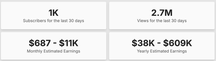Theo thống kê từ Social Blade, kênh YouTube của Nhật Kim Anh đang mang về mức doanh thu ước tính vô cùng ấn tượng, dao động từ 38.000 USD đến 609.000 USD mỗi năm, tương đương hơn 1 tỷ đến hơn 16 tỷ đồng. Đây là con số khiến cộng đồng mạng "dậy sóng" bởi không phải nghệ sĩ nào cũng có thể duy trì được lượng truy cập, thời gian xem và tệp người theo dõi ổn định để tạo ra nguồn thu lớn đến như vậy.