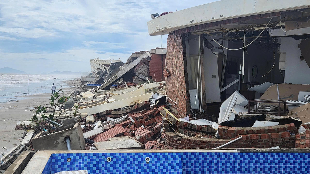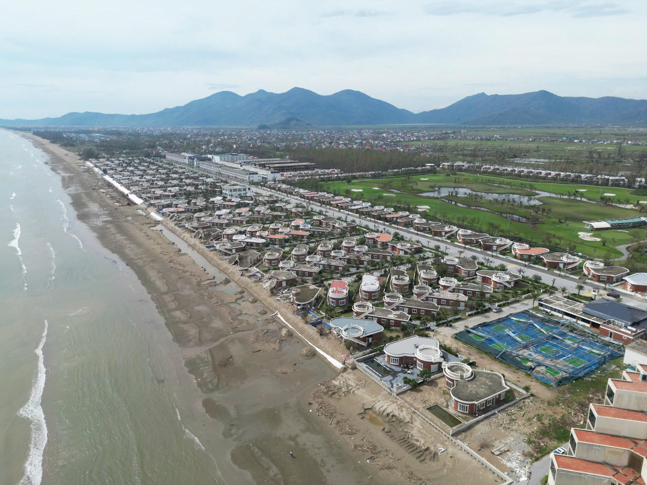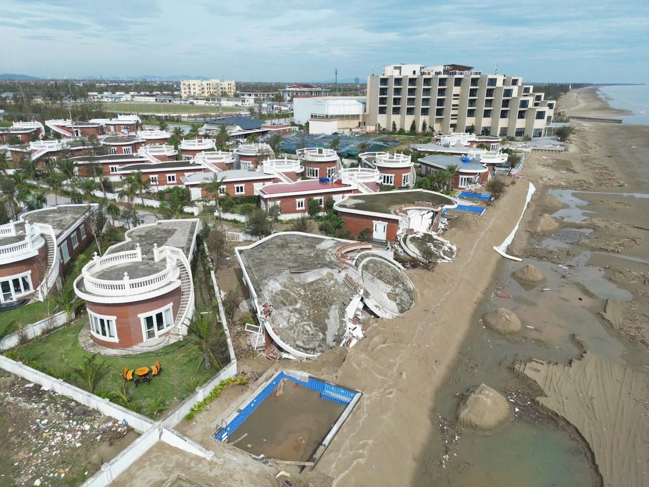 Bão số 10 khiến gần 30 căn biệt thự Hoa Tiên nằm sát biển bị thiệt hại, trong đó có khoảng 6 căn bị đổ sập hoàn toàn, gây thiệt hại lớn cho nhà đầu tư.