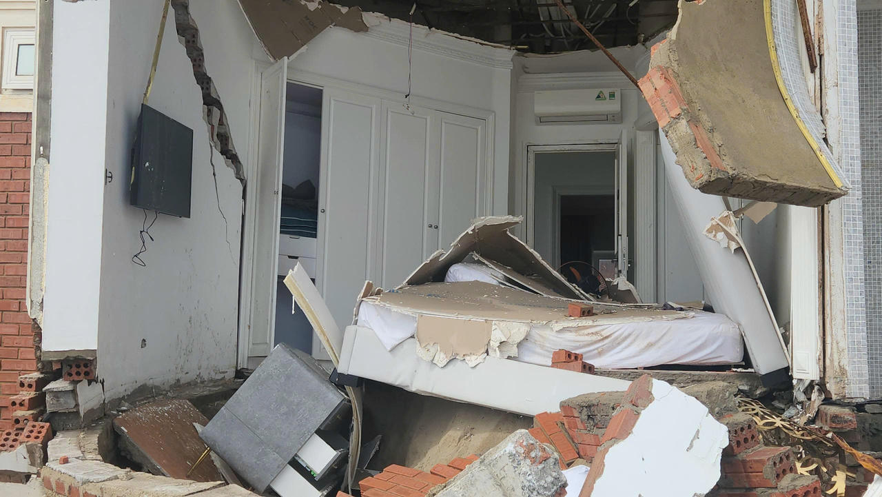 Người dân địa phương đặt nghi vấn tình trạng đổ sập này một phần do khu biệt thự được xây dựng quá sát biển mà không có hệ thống kè chắn sóng bảo vệ.
