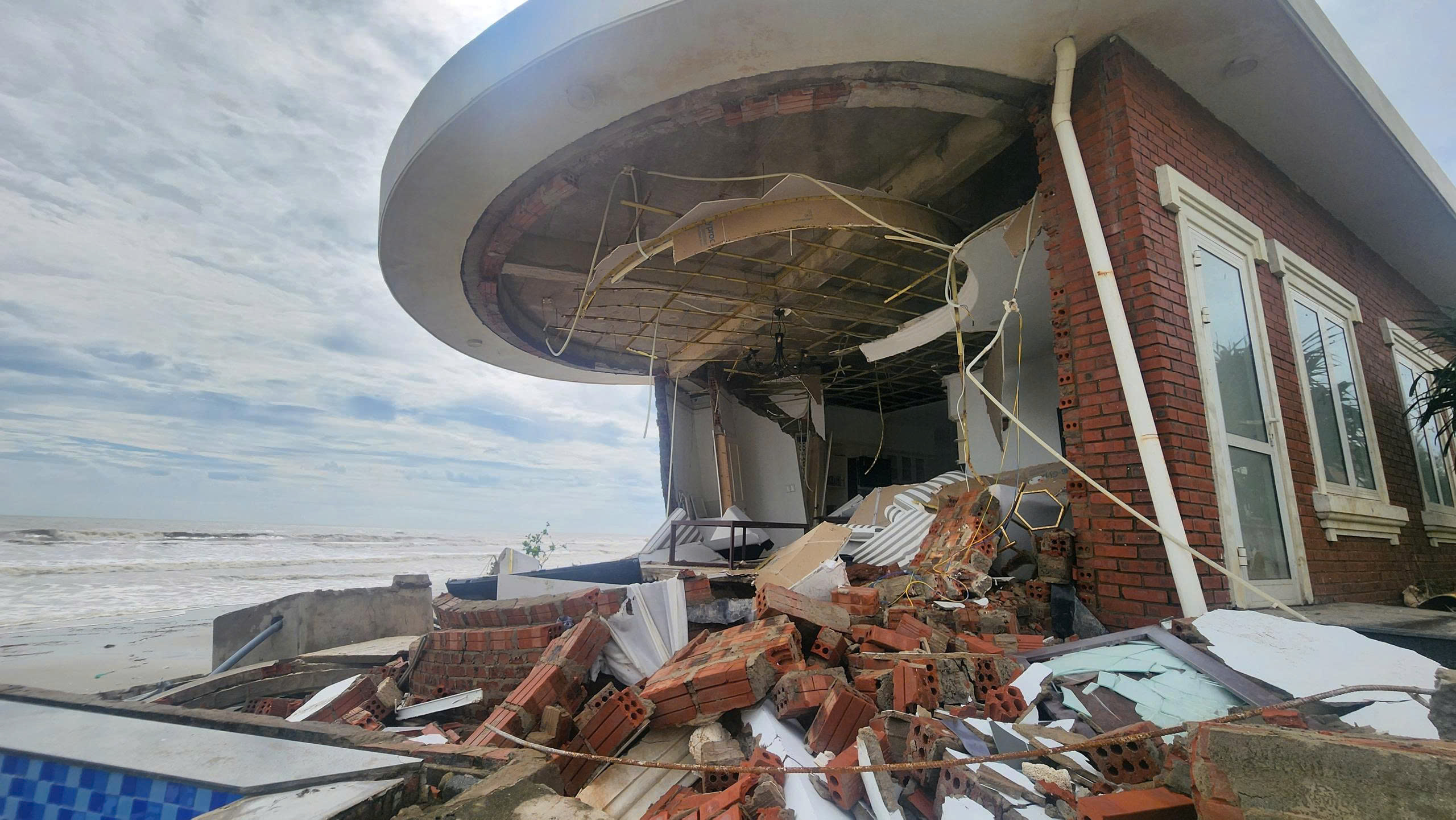 >> Một số hình ảnh tan hoang tại căn villa ven biển sau bão số 10