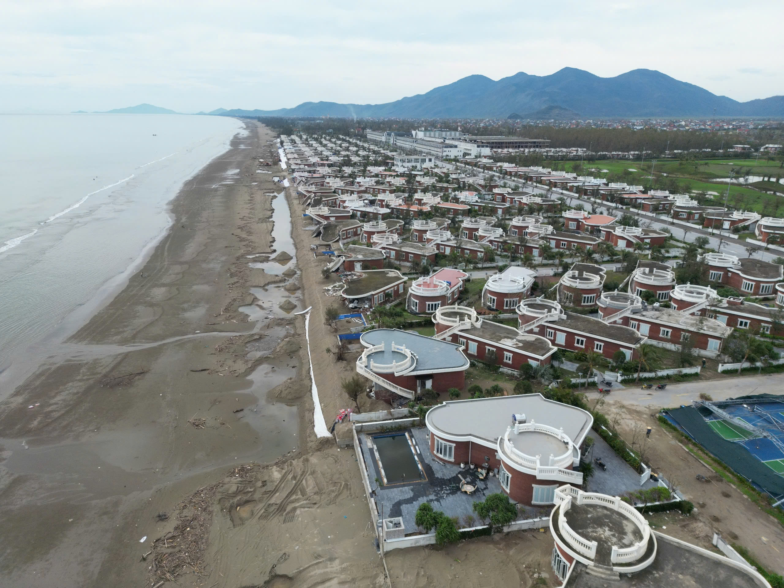 Trước đó, sau ảnh hưởng của bão số 10 vừa qua đã khiến nhiều căn villa tại Dự án Hoa Tiên Xuân Thành bị hư hỏng nặng nề, thiệt hại ước tính lên đến hàng tỷ đồng. Trong số này, nhiều căn villa sát biển bị đổ sập gần như hoàn toàn.