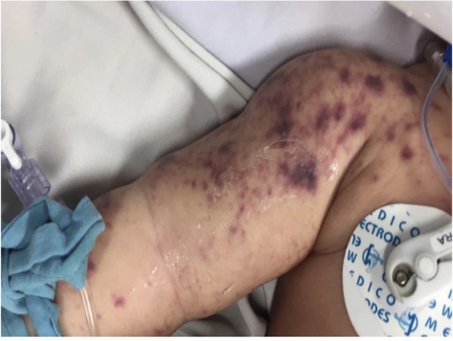 Bệnh nhi T.H.N.Y. (sinh năm 2015, đặc khu Phú Quốc, An Giang). Theo điều tra, trước khi nhập viện khoảng 9 giờ, trẻ sốt, mệt, đau đầu nhưng gia đình nghĩ là sốt thông thường nên chưa đưa đi khám. Đến gần thời điểm nhập viện, trẻ sốt cao, nổi ban tím toàn thân, khó thở nên được đưa đến Trung tâm Y tế Phú Quốc.