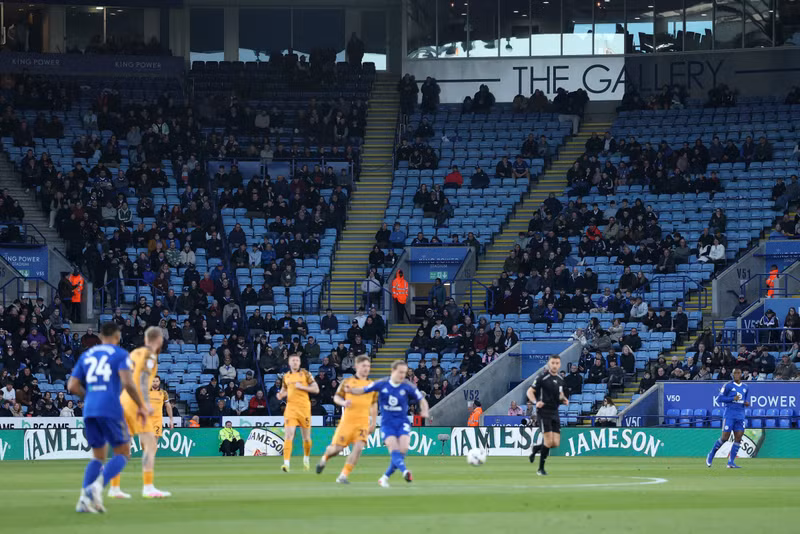 Cổ động viên Leicester quay mặt đi trong sự phẫn nộ khi trận đấu trên sân trên sân King Power kết thúc.