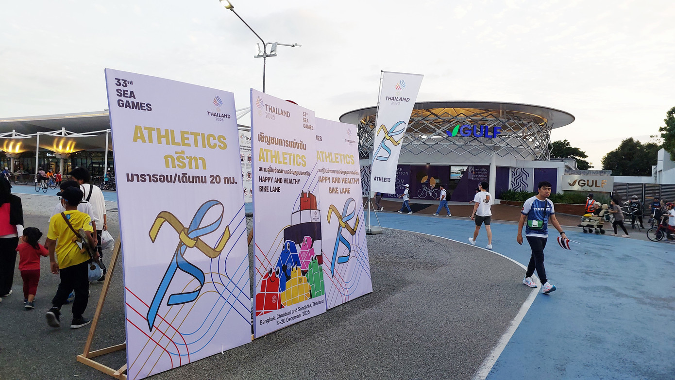 Quang cảnh tại đường đua xe đạp Happy & Healthy Bike Lane, nơi diễn ra các nội dung marathon và đi bộ SEA Games 33. (Ảnh: Thanh Hải)