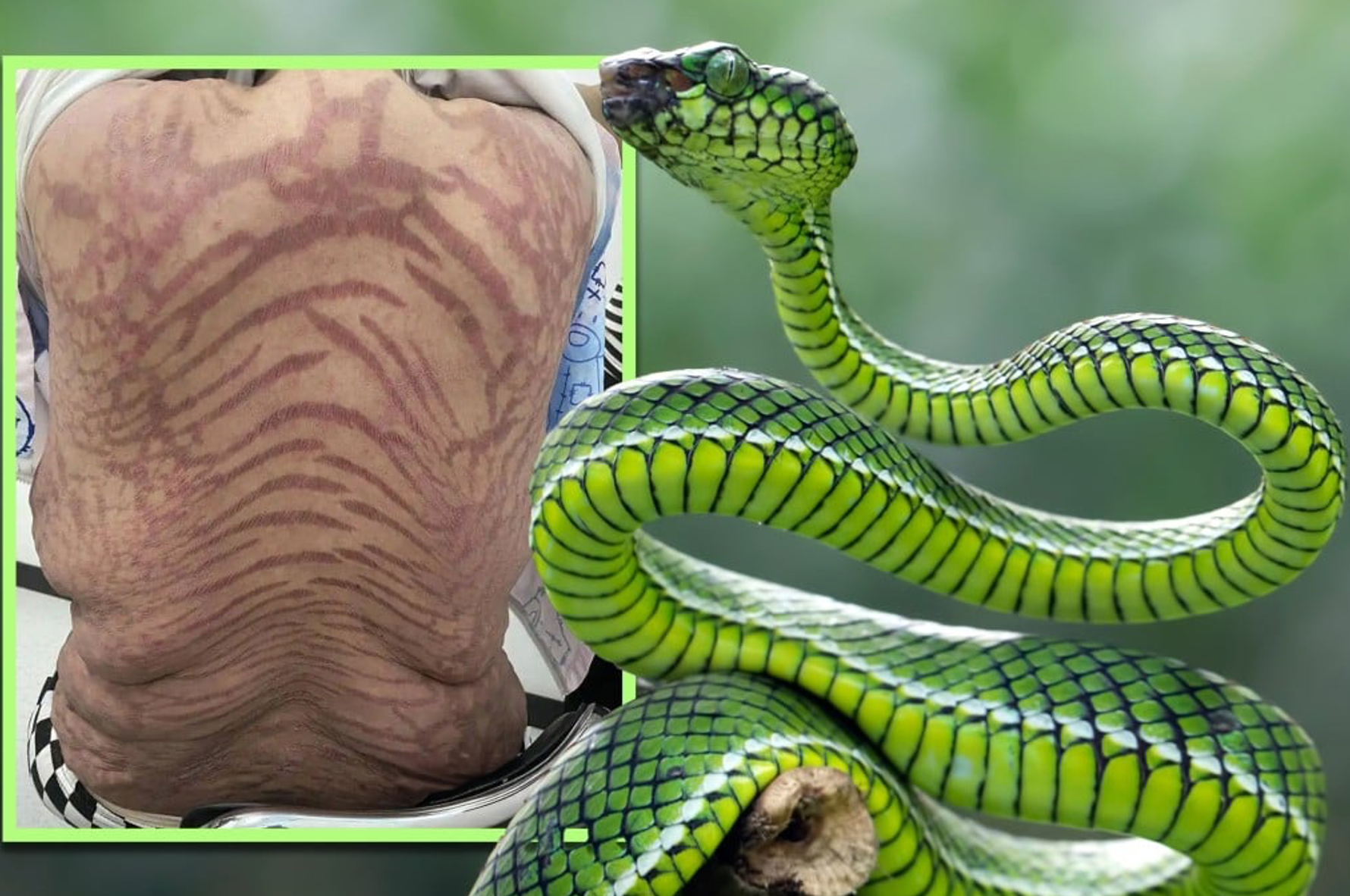 Một phụ nữ Trung Quốc mới đây khiến mạng xã hội dậy sóng khi trên cơ thể xuất hiện những vân nứt màu đỏ tím giống như da rắn. Ảnh: SCMP