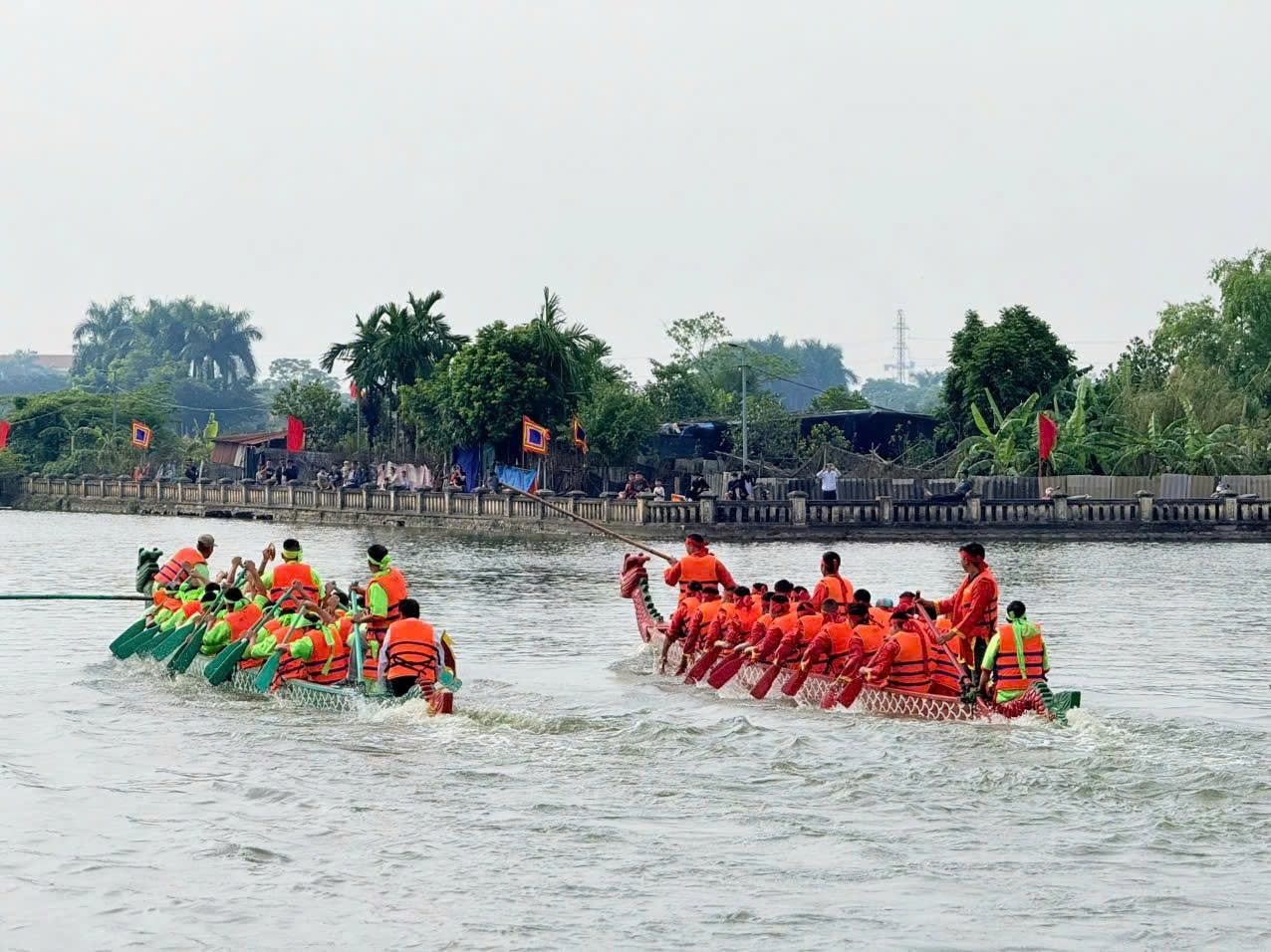 Môn bơi chải là nét đẹp văn hóa phi vật thể đặc trưng của Thượng Cát. Ảnh Anh Thư