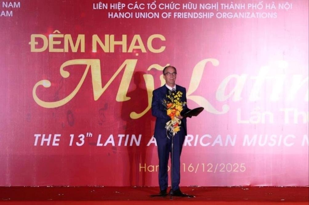 "Đối với chúng tôi, Việt Nam thực sự là một bến đỗ bình yên. Với bất kỳ ai, sinh sống và làm việc tại mảnh đất này là một điều may mắn. Trong bối cảnh thế giới đang trải qua nhiều biến động, đêm nhạc Mỹ Latinh hôm nay mang một ý nghĩa đặc biệt, một sân chơi kết nối cảm xúc, thắt chặt tình đoàn kết giữa những người Mỹ Latinh, bạn bè quốc tế và nhân dân Việt Nam", Đại sứ Cuba nhấn mạnh.