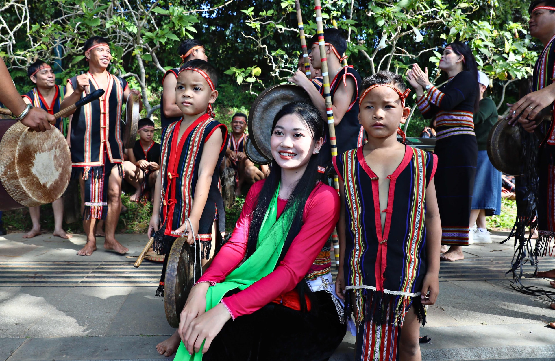 Các nghệ nhân "nhí" chụp hình lưu niệm trong buổi diễu hành cồng chiêng. Ảnh: Chính Thành