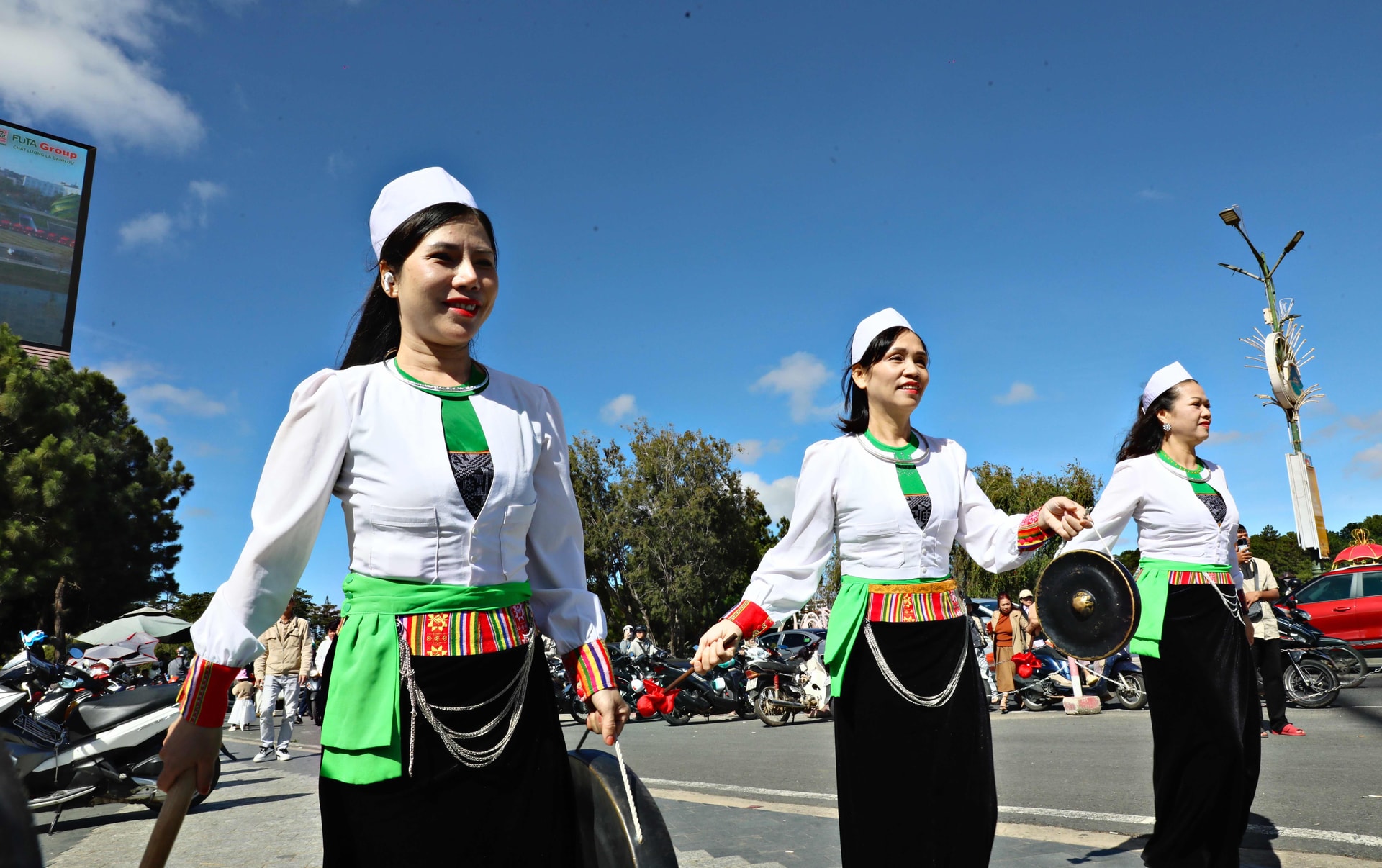 Carnival cồng chiêng diễu hành đường phố là ngày hội của các dân tộc tỉnh Lâm Đồng. Ảnh: Chính Thành