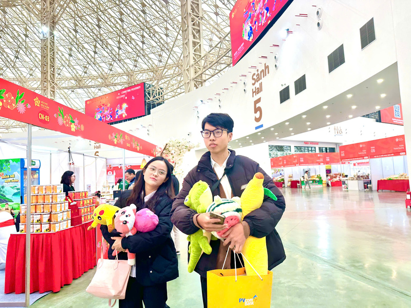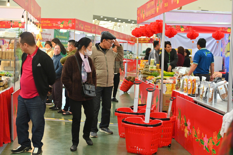 Hội chợ hông chỉ thu hút khách ở Hà Nội mà còn từ các tỉnh lân cận như Bắc Ninh, Hưng Yên, Phú Thọ... cũng tới tham quan, mua sắm. Ảnh: Đỗ Nga