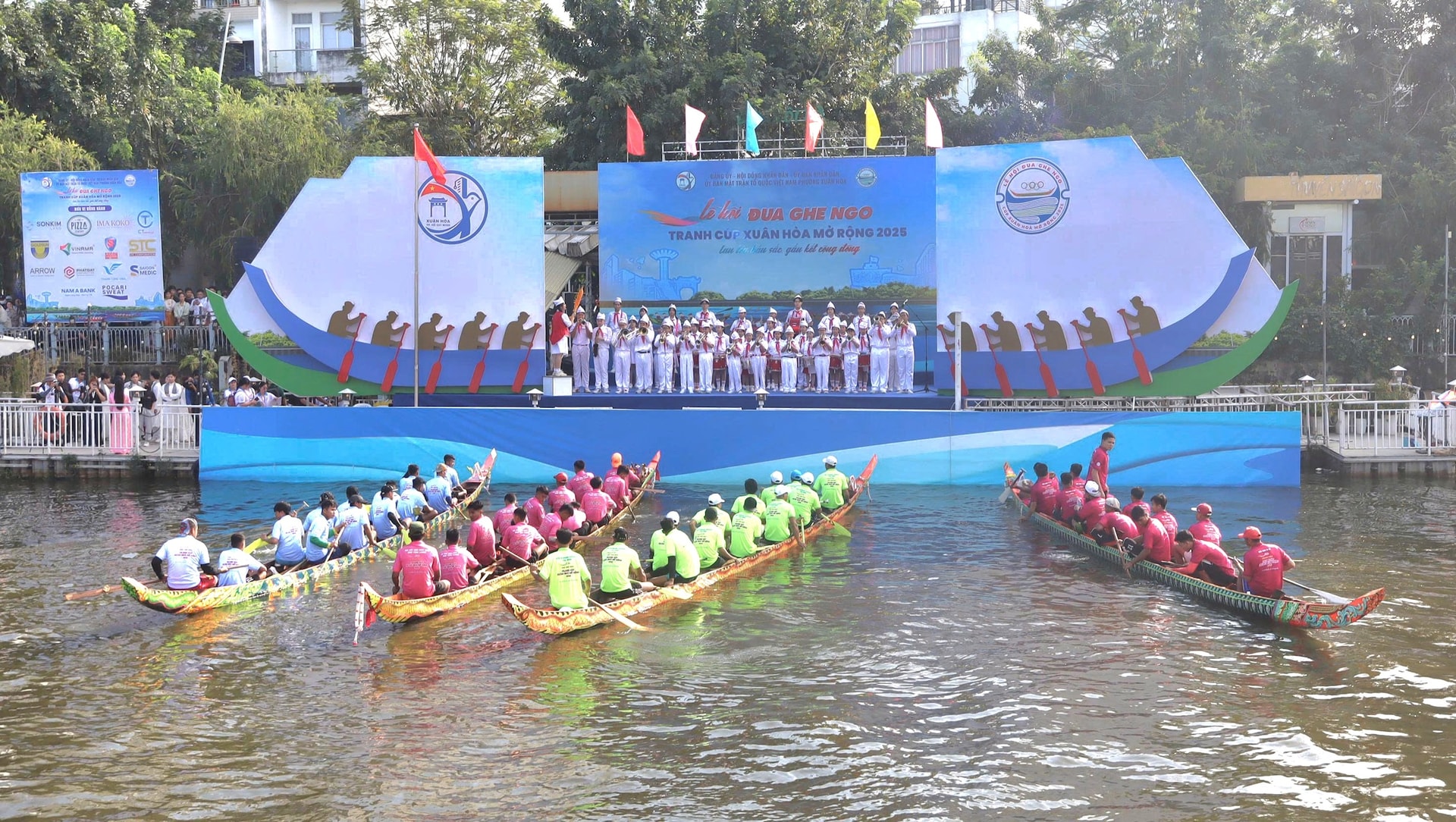 Lễ hội đua ghe Ngo cúp Xuân Hòa mở rộng, năm 2025 trên dòng kênh Nhiêu Lộc - Thị Nghè. Ảnh Nghiêm Ý.