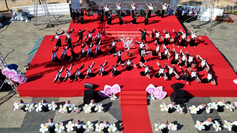 Một tiết mục trình diễn với những cánh hoa ban đặc trưng của núi rừng Tây Bắc.