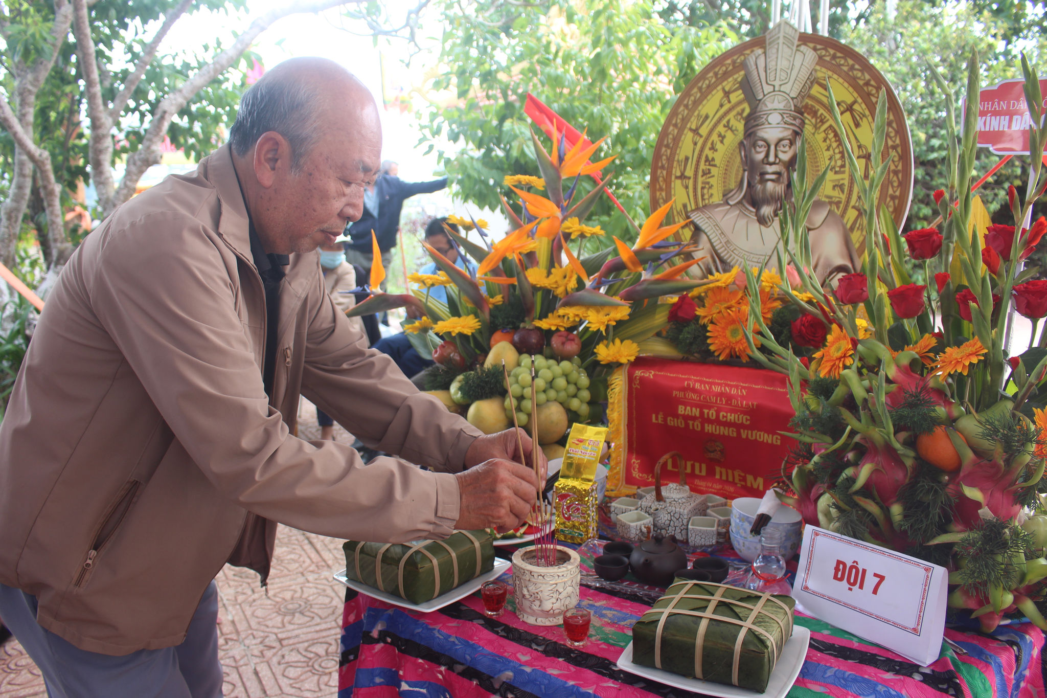 Với chủ đề “Hương sắc đại ngàn dâng Quốc Tổ”, các đội thi thể hiện sự khéo léo qua từng công đoạn: gói, nấu bánh chưng; cắm hoa; sắp đặt mâm lễ vật. Nguyên liệu sử dụng phong phú, từ bánh chưng, bánh giầy, bánh khảo ngũ sắc, hoa, quả, trầu, cau…