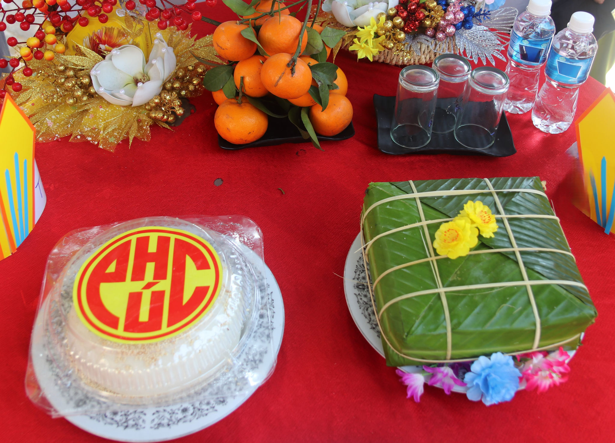 Trong thời gian quy định, những đôi tay thoăn thoắt, khéo léo đã tạo nên những chiếc bánh chưng vuông vức, chắc tay. Còn bánh giầy được làm sau khi giã nếp nhuyễn, nặn bánh tròn đều và trang trí chữ “Phúc” màu đỏ, thể hiện khát vọng về cuộc sống đủ đầy, ấm no của Nhân dân.