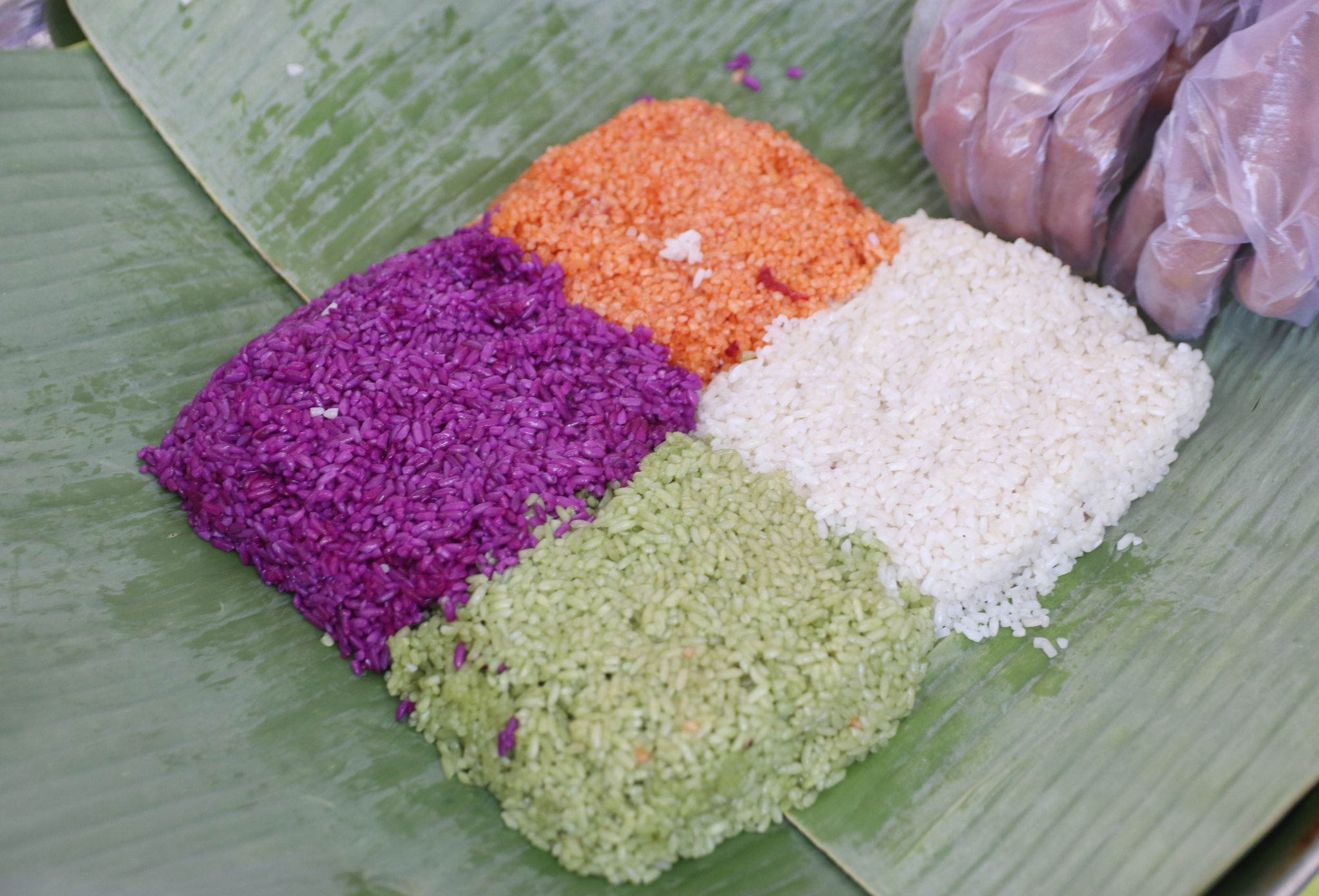 Những chiếc bánh chưng ngũ sắc được người dân làm với sự khéo léo và tấm lòng thành kính