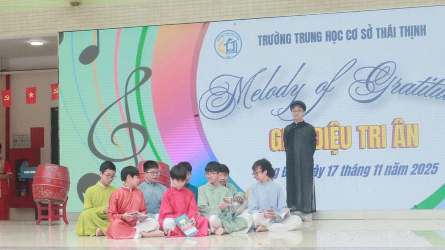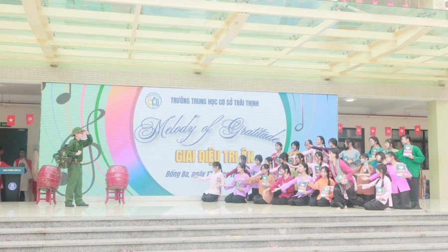 Tại Trường THCS Thái Thịnh, phường Đống Đa - thầy Hiệu trưởng Nguyễn Cao Cường cho hay, chào mừng 43 năm Ngày Nhà giáo Việt Nam, nhà trường tổ chức Cuộc thi “Melody of Gratitude – Giai điệu tri ân” để học sinh tham gia. Qua sân chơi này, thầy cô muốn tìm kiếm, phát hiện và bồi dưỡng các học sinh tài năng và có đam mê, sở thích âm nhạc.